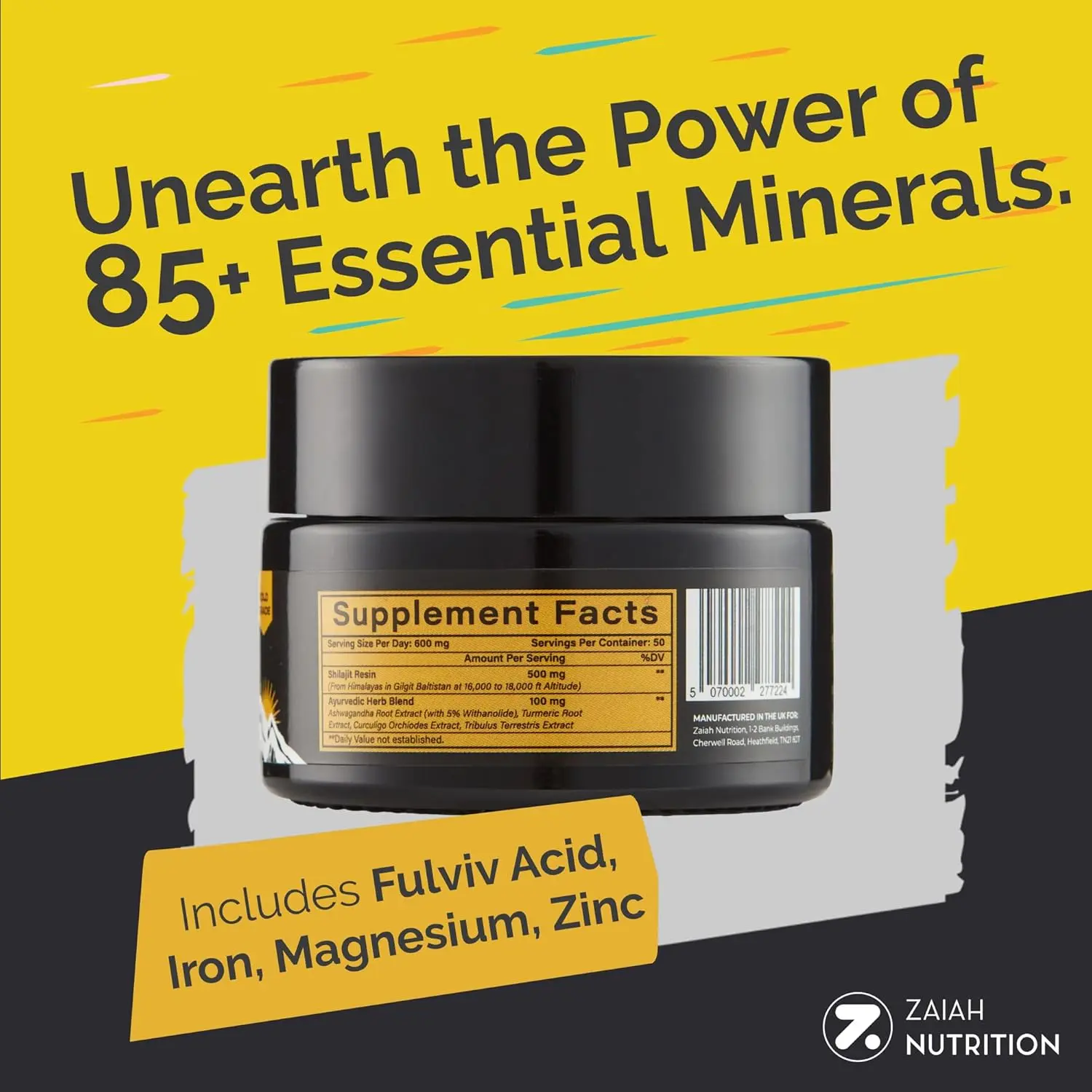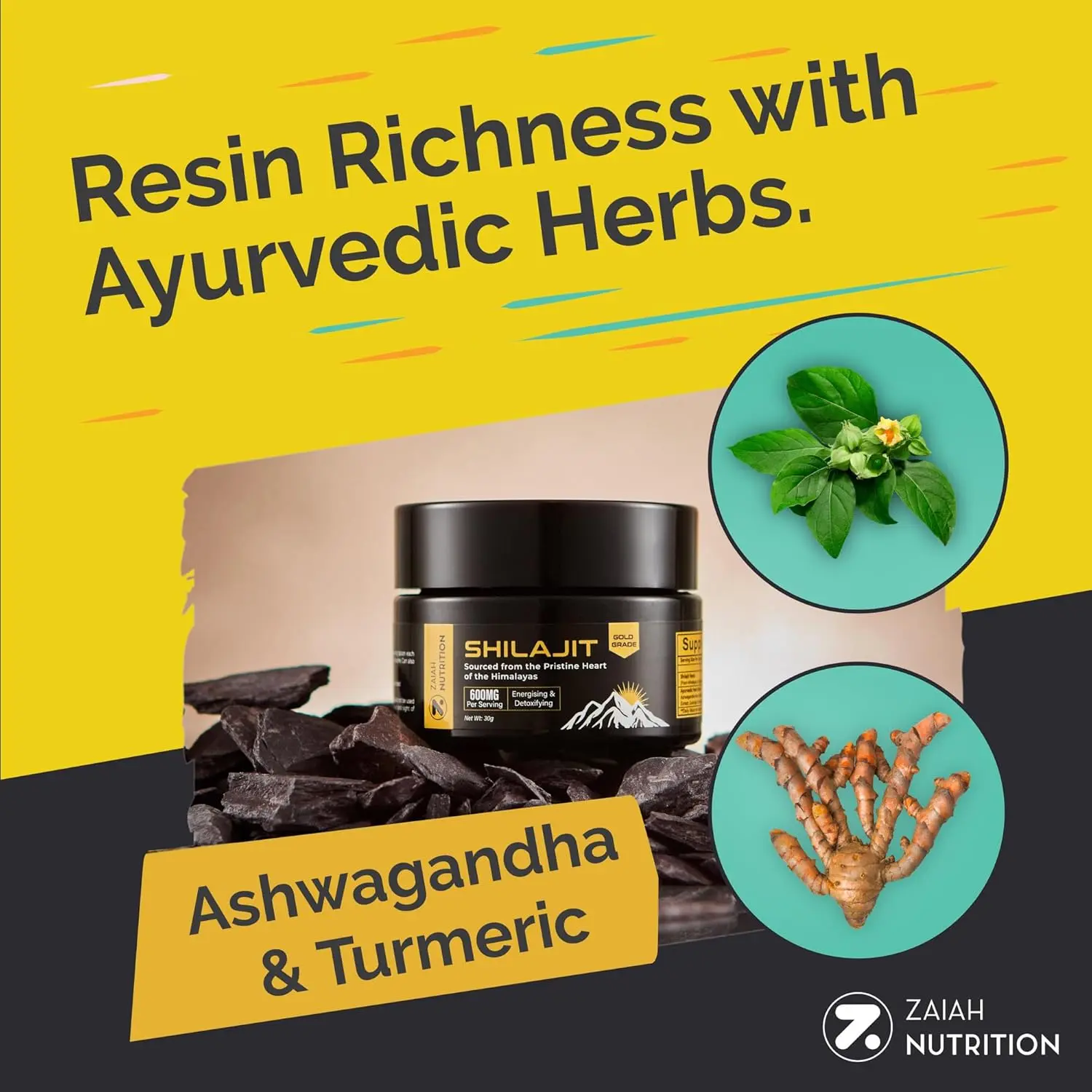 Unlock the ancient power of the Himalayas with our authentic Shilajit Resin. This gold-grade Shilajit is meticulously harvested from the pristine Gilgit-Baltistan region, ensuring unparalleled purity and potency. Infused with a carefully selected Ayurvedic herbal blend, our Shilajit offers maximum health benefits, supporting your energy levels, bolstering your immune system, and sharpening your cognitive function. Experience the natural energy boost and mental clarity that comes from 85+ essential minerals and Fulvic Acid. Unlike capsules or pills, our Shilajit resin dissolves easily in warm water, tea, or smoothies, making it a simple and enjoyable addition to your daily routine. This long-lasting 30g supply comes in a compact, resealable package, perfect for home use and travel. Rest assured, our Shilajit is third-party tested for heavy metals and purity, and trusted by health experts for its consistent, high-quality Himalayan Shilajit benefits. Embrace a natural path to wellness and vitality with our premium Shilajit Resin. Feel the difference of authentic Himalayan gold, backed by science and tradition. Support your body’s natural defenses, enhance your focus, and revitalize your energy with this potent and easily absorbed supplement. Perfect for anyone seeking a natural and effective way to improve their overall well-being.