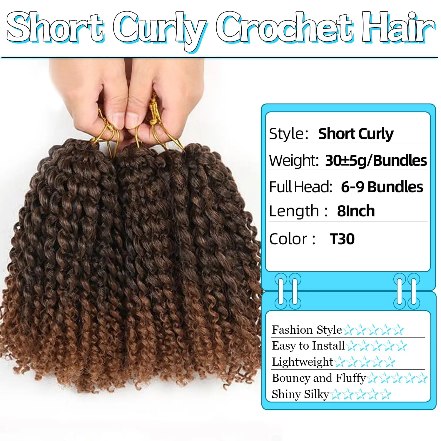 Achieve a stunning and effortless look with our Short Marlybob Crochet Hair! This high-quality crochet hair is perfect for black women looking to add volume, texture, and style to their hair. Made from 100% Low Temperature Kanekalon Synthetic Fiber, this 8-inch passion twist hair offers a natural texture that is both beautiful and soft to the touch. The jerry curl crochet hair is lightweight, odorless, and easy to install, making it ideal for creating a variety of stylish looks. Each package includes 6 bundles of Marlybob crochet hair, along with a crochet hook and decorative beads for added flair. With two packs per package, you’ll have everything you need for a full head of gorgeous, short curly crochet hair. To achieve the perfect look, simply shake the wig gently to loosen the curls and create a casual, fluffy style. Please note that due to lighting and different display settings, the exact color may vary slightly from the image. Enjoy the convenience and beauty of this brand-new, high-quality crochet hair! Each bundle weighs 305g and the total package weighs approximately 180g. Get ready to turn heads with this beautiful and easy-to-install crochet hair!