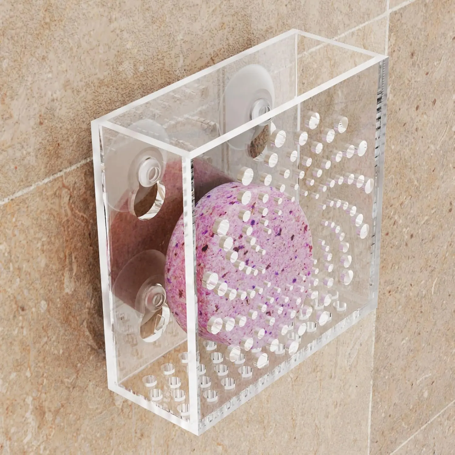 Enhance your shower aromatherapy experience with this clear acrylic shower steamer holder. Designed for extended usage and enhanced fragrance, this holder ensures your shower steamer releases its delightful aroma for a longer period, creating a more lasting and enjoyable spa-like atmosphere. Say goodbye to accidental crushing and wasted steamers! This holder effectively prevents the steamer from being stepped on during use, reducing the risk of damage and ensuring safety and integrity with every shower. Keep your drain clear and flowing smoothly. This holder prevents shower steamer residue from entering the drain, avoiding frustrating water blockages and maintaining a clean shower environment. Crafted from high-quality transparent acrylic, this holder is not only durable and easy to clean but also seamlessly blends with any bathroom decor style. Its transparent design allows the beauty of your shower steamers to shine through. Enjoy convenient and hassle-free installation with the included 4 strong suction cups and self-adhesive tape. The holder can be easily fixed to any smooth surface without the need for tools, offering a simple, quick, and secure setup. Everything you need is included: 1 shower steamer holder, 4 suction cups, and 2 self-adhesive tape strips. Elevate your shower routine and indulge in the ultimate aromatherapy experience with this essential shower accessory.