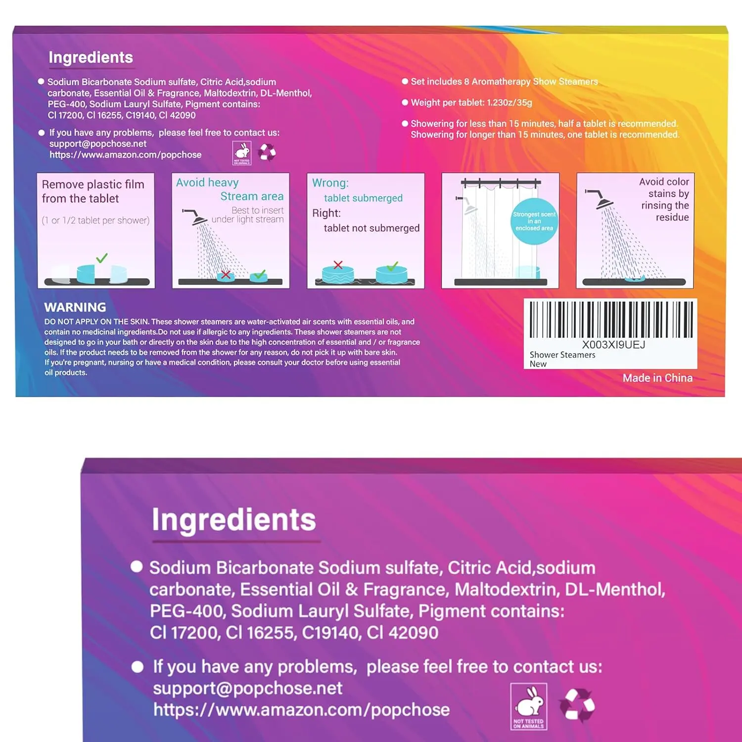 Transform your shower into a spa-like sanctuary with POPCHOSE Shower Steamers! These aromatherapy tablets are the perfect birthday gift for the woman who has everything, offering a relaxing and rejuvenating self-care experience. Treat your mom, wife, girlfriend, or best friend to a moment of tranquility with these unique and thoughtful gifts. Our innovative splitting line allows you to break the tablet in half, effectively doubling the value and extending the aromatherapy experience. Unlike competitors, even half of a POPCHOSE shower steamer delivers superior fragrance and lasting aromatherapy thanks to our double essential oil infusion and slow-dissolving formula. Immerse yourself in nature’s aromatherapy with our paraben-free and sensitive skin-friendly formula. Choose from a range of 100% natural and organic scents derived from fresh plants and fruits, including soothing Lavender, earthy Sage & Patchouli, zesty Lemon & Mandarin, refreshing Grapefruit, invigorating Menthol & Eucalyptus, sweet Orange & Vanilla, cooling Peppermint, and calming Chamomile & Rose. Our shower tablets contain twice the amount of pure essential oils compared to other brands, ensuring a long-lasting and potent fragrance. The higher density and absence of seeds or dry flowers prevent breakage during delivery and clogging of drains during use. Elevate your self-care routine and unwind after a long day with the simple yet effective aromatherapy provided by POPCHOSE shower steamers. Packaged in a lovely gift box, these steamers make a luxurious and thoughtful present for Valentine’s Day, Mother’s Day, Christmas, Thanksgiving, weddings, or any special occasion for the important women in your life – your grandma, mother, girlfriend, sister, teacher, or friend. To create your home spa experience, simply place the tablet on the shower floor where it won’t be directly under the heavy stream of water, but where water can still flow through. Adjust the water temperature to above 104℉ (40℃) for optimal results.