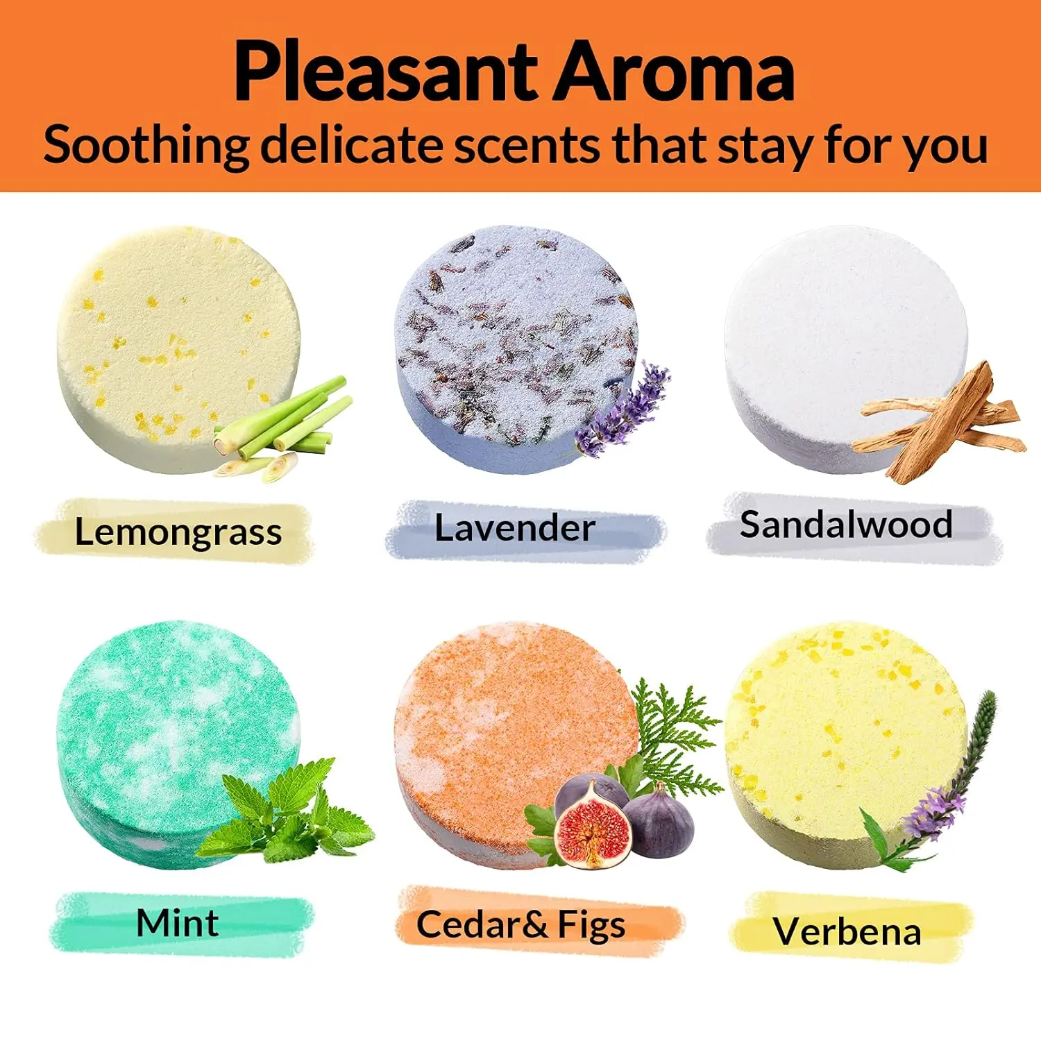 • Variety of scents including lavender, cedar and figs, mint, verbena, lemongrass, and sandalwood.