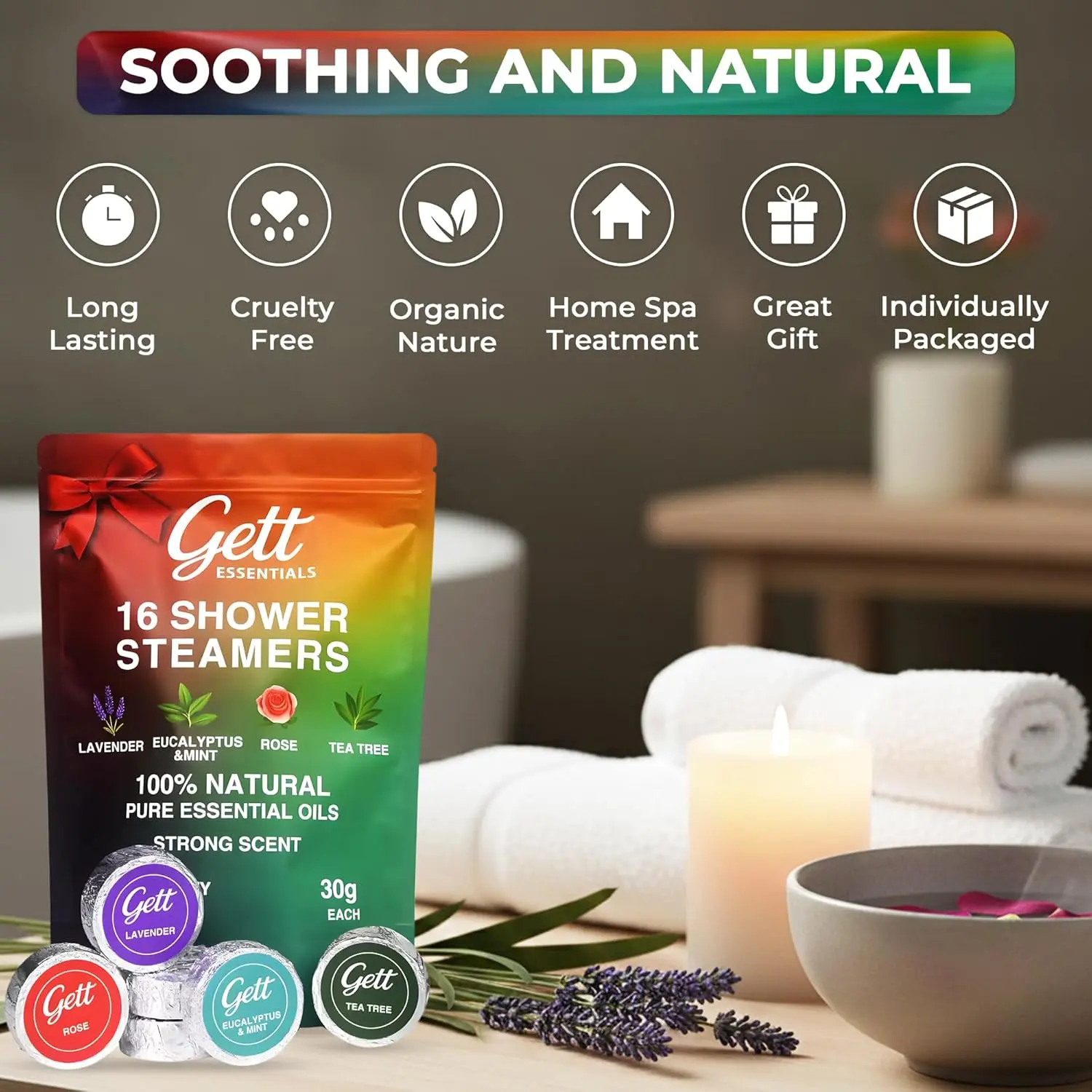Our individually wrapped aromatherapy steamers ensure freshness and convenience. Whether you’re seeking a rejuvenating boost to start your day or a calming escape before bed, these shower steamers deliver long-lasting aromatherapy that will leave you feeling refreshed and revitalized. They are more than just shower accessories; they are a thoughtful way to incorporate self-care into your daily routine.