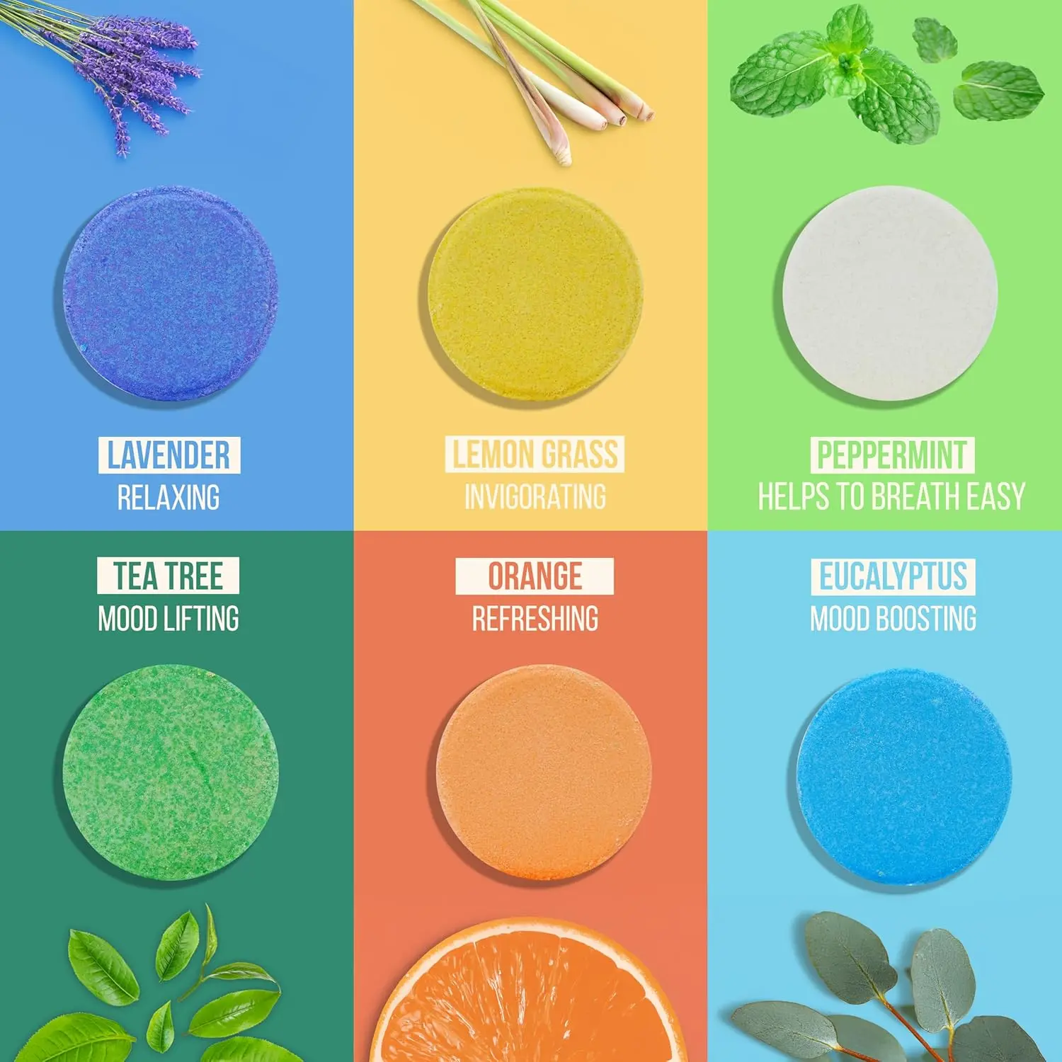 Transform your daily shower into a revitalizing spa experience with our Shower Steamers Aromatherapy. Infused with a potent blend of six premium essential oils – lavender, eucalyptus, orange, lemongrass, peppermint, and tea tree – these handcrafted shower tablets deliver a luxurious aromatherapy escape right in your own bathroom. Each steamer is carefully made in the USA using only natural, eco-friendly, high-quality ingredients, ensuring a clean, safe, and truly indulgent experience. Breathe deep and let the refreshing fragrances uplift your mood, whether you’re seeking an energizing boost to start your day or a calming retreat to unwind before bed. Our shower bomb gift set is designed to dissolve slowly, releasing vibrant and long-lasting aromas that fill your shower with invigorating or soothing scents. This variety pack makes the perfect self-care gift for women, men, and teens alike. Treat yourself or someone special to a moment of pure relaxation and rejuvenation. Ideal for birthdays, holidays, or just because, our USA-made shower steamers are a testament to quality and a commitment to natural self-care. Experience the pure benefits of essential oils and elevate your everyday routine with our premium aromatherapy shower steamers.