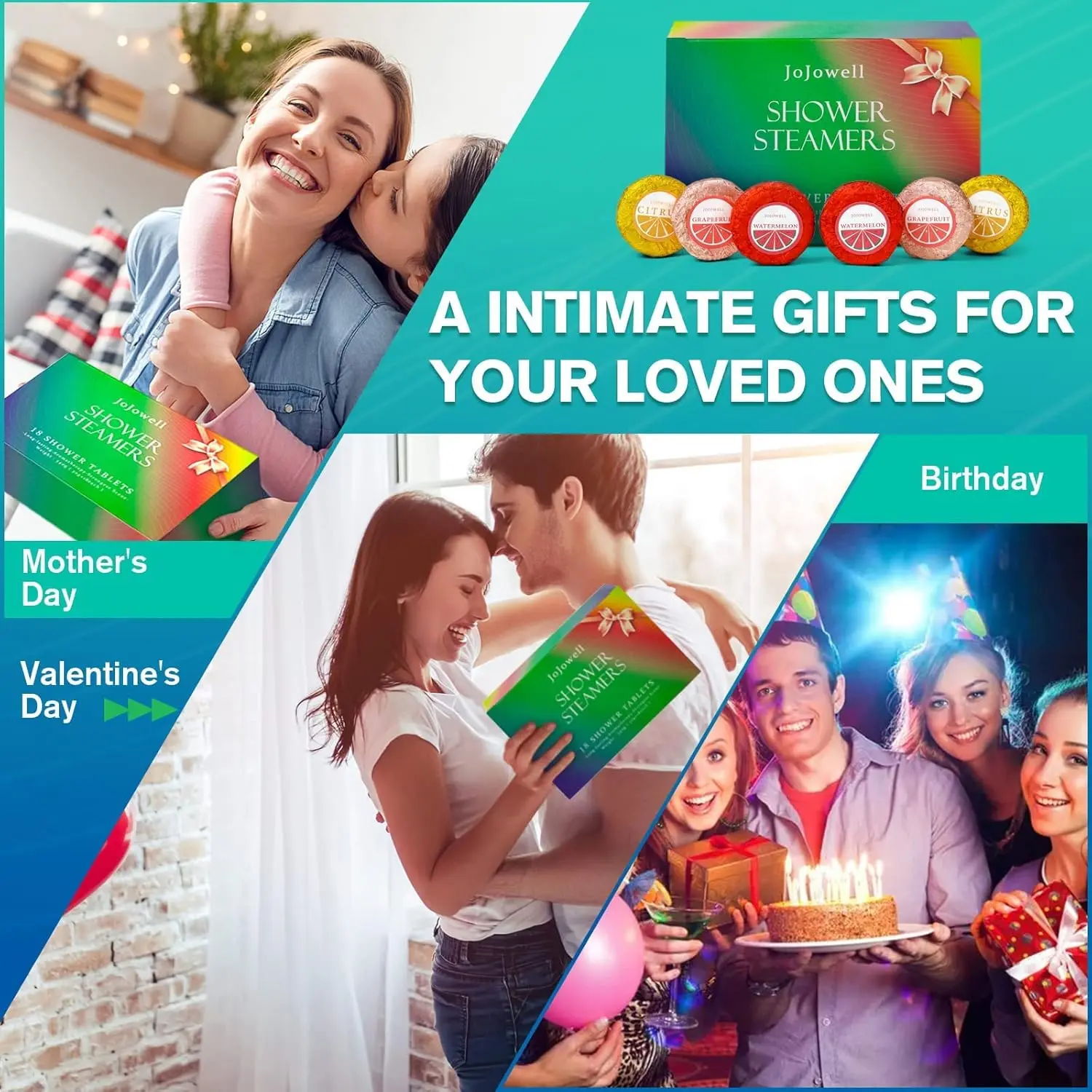 • Includes 18 shower steamers in a gift-ready box.