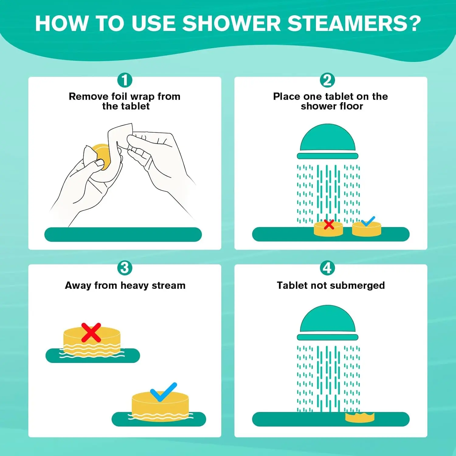 Choose from six captivating natural scents, including eucalyptus, mint, lavender, watermelon, grapefruit, and citrus. Each shower steamer is infused with concentrated natural essential oils, derived from organic plants and fruits, providing a long-lasting and authentic aromatherapy experience. Say goodbye to stress and fatigue as you indulge in the enchanting aroma and embrace a moment of self-care.