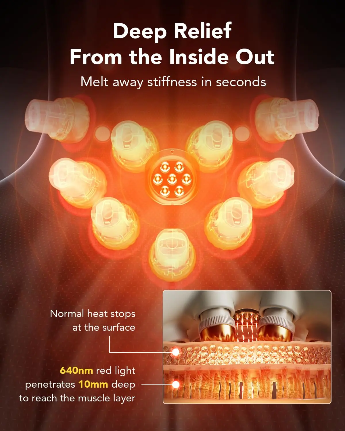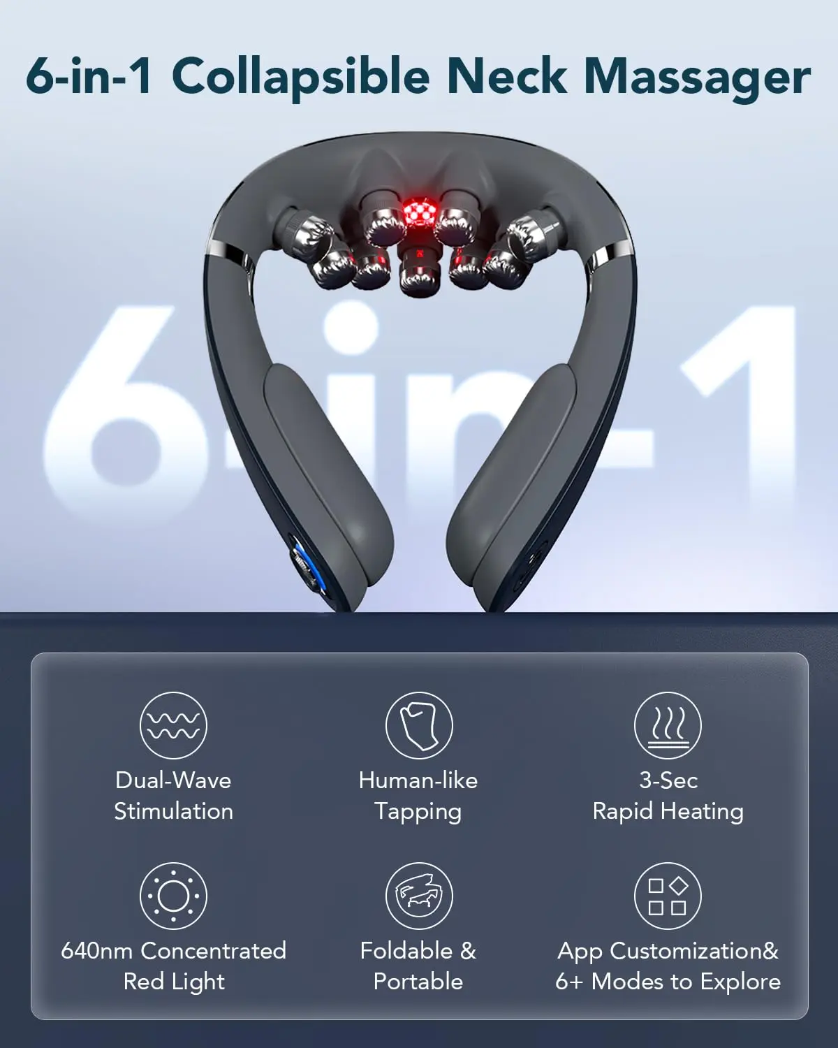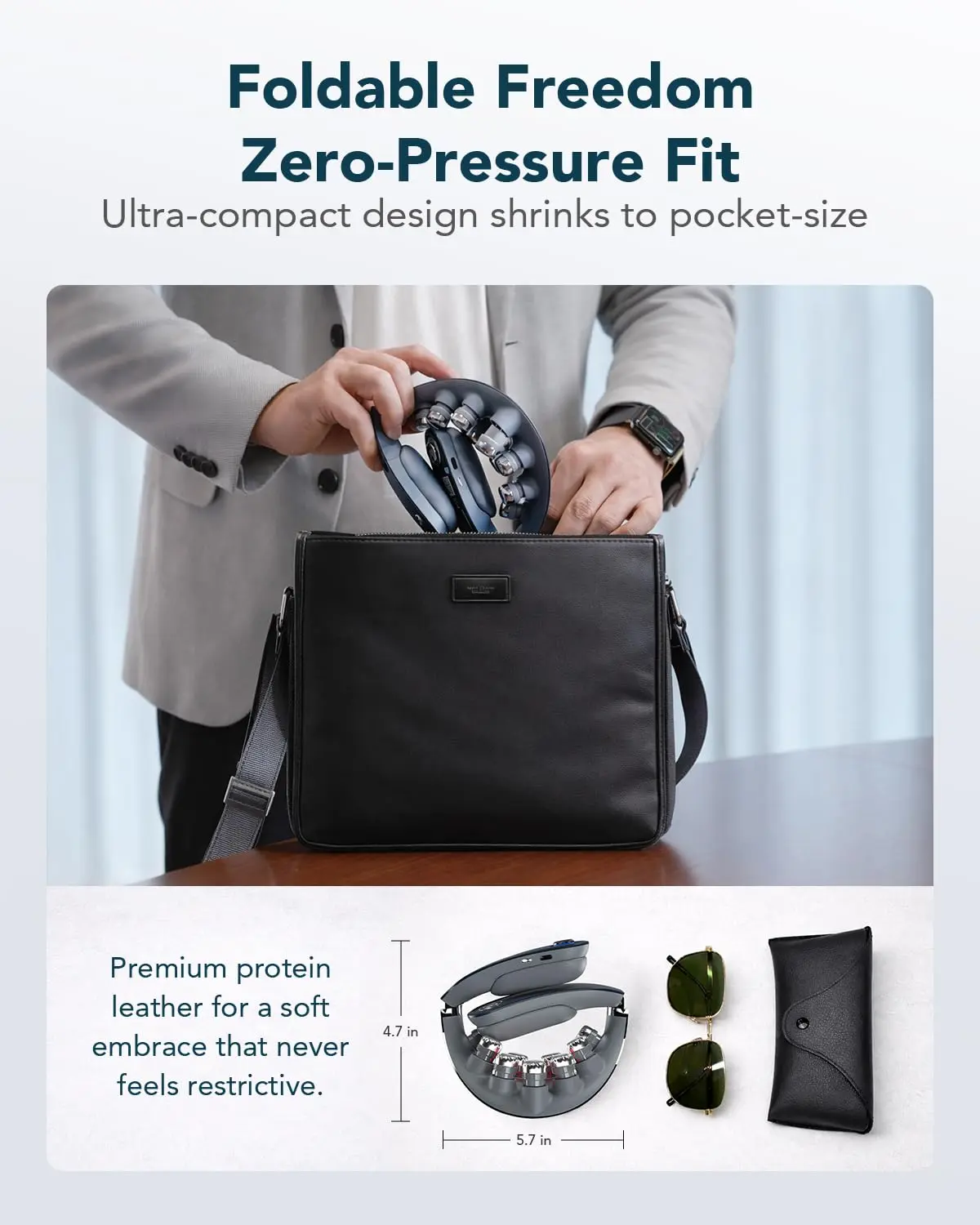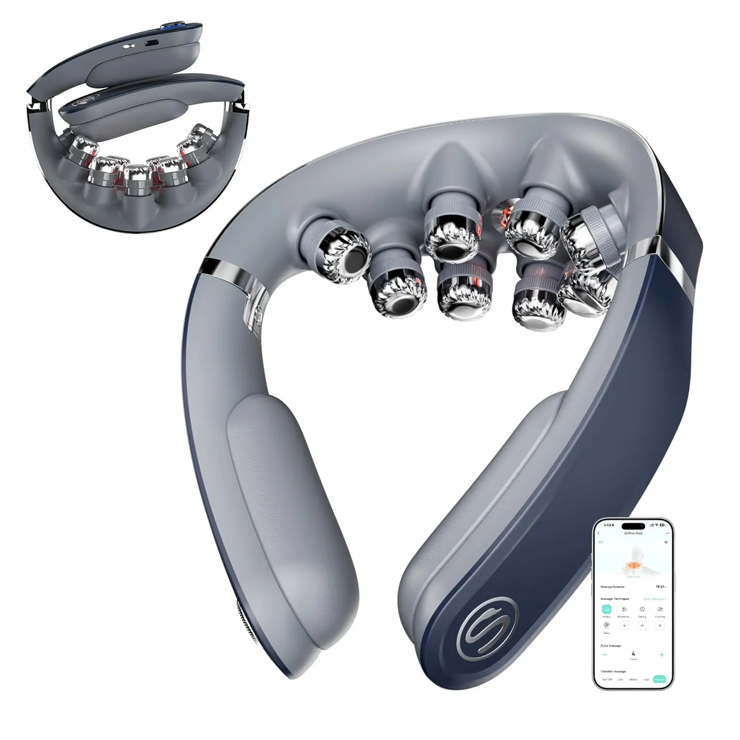Experience unparalleled relaxation with the SKG G7pro-Fold Neck Massager. This innovative device combines unique vibrating red light massage with soothing heat to melt away tension and provide deep muscle relief. Unlike traditional percussion massagers, the G7 Pro utilizes advanced massage technology for a more effective and enjoyable experience. Featuring 9 upgraded vibrating massage heads, each providing a larger massage area and 30% higher vibration than previous generations, this massager delivers a truly immersive and revitalizing massage. Customize your experience with 5 different modes and 4 levels of heat and vibration to perfectly match your needs. Its foldable and lightweight design, weighing only 270g, makes it incredibly portable, allowing you to enjoy a relaxing massage anytime, anywhere. The long-lasting 2400mAh battery provides up to 140 minutes of continuous use, and the cordless design offers complete freedom of movement. The SKG G7 Pro is not just a massager; it’s a statement of quality and design, evidenced by its prestigious German IF Design Award 2024. The protein leather neck cushion ensures ultimate comfort, while the high-quality PU leather exudes sophistication. User-friendly multi-functional rocker buttons provide effortless control. Whether you’re seeking relief from neck pain, stress, or simply want to indulge in a moment of relaxation, the SKG G7 Pro Fold Neck Massager is the perfect solution. It also makes an exceptional gift for family and friends. Enhance your massage experience by lightly wiping the massage heads with a wet wipe before use for a smoother, more comfortable feel. For enhanced control, download the dedicated app – scan the QR code on Android or search for “Future Wear” on iOS. Discover the difference and elevate your well-being with the SKG G7 Pro.