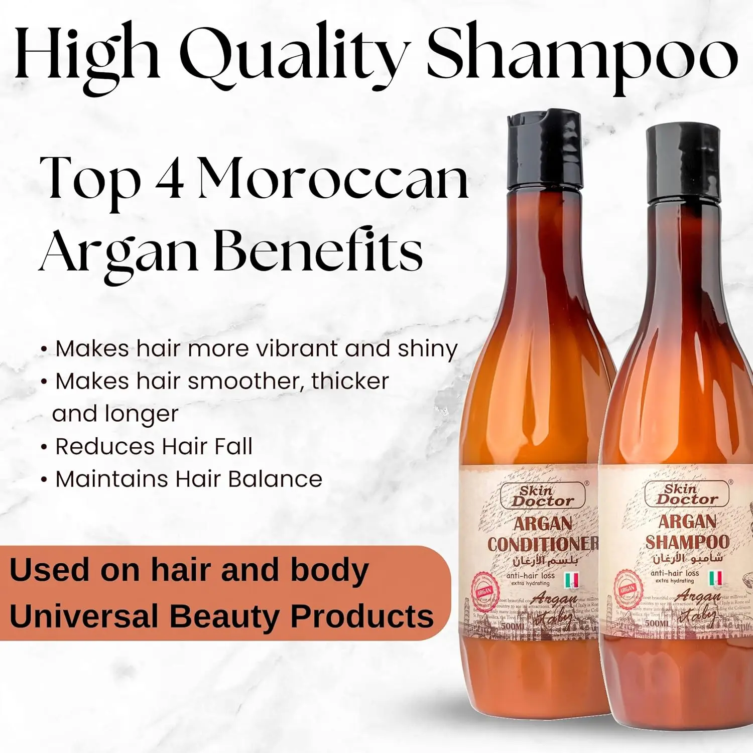 Revitalize your hair with the luxurious Skin Doctor Argan Oil Shampoo and Conditioner Set. This dynamic duo is meticulously formulated to nourish, hydrate, and strengthen your hair from root to tip. Infused with the enriching properties of argan oil, this set works wonders to restore shine, manageability, and overall hair health. Say goodbye to dry, brittle strands and hello to luscious, vibrant locks. The shampoo gently cleanses away impurities without stripping away essential oils, while the conditioner deeply moisturizes and detangles, leaving your hair feeling incredibly soft, smooth, and manageable. Suitable for all hair types, especially beneficial for dry, damaged, or color-treated hair. Experience the transformative power of argan oil and unlock your hair’s true potential with the Skin Doctor Argan Oil Shampoo and Conditioner Set.