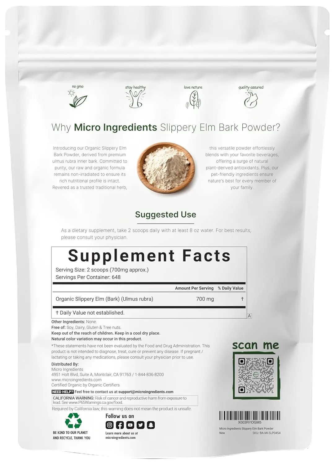 • Ingredient: Organic Slippery Elm Bark Powder