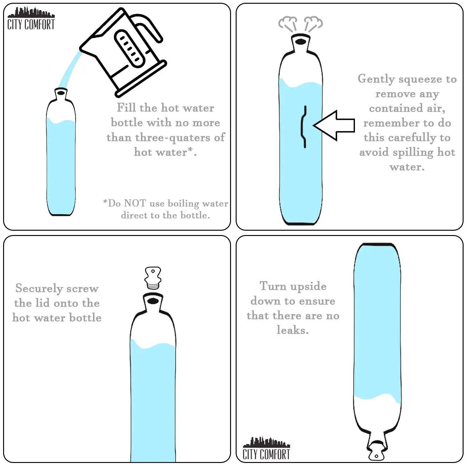 Safety is paramount. The hot water bottle itself is constructed from high-quality natural rubber and meticulously manufactured to meet the rigorous safety standard BS1970:2012. This ensures you can enjoy its warmth and comfort with complete peace of mind. These maxi hot water bottles with covers can hold up to 2 liters and are made of 100% natural rubber