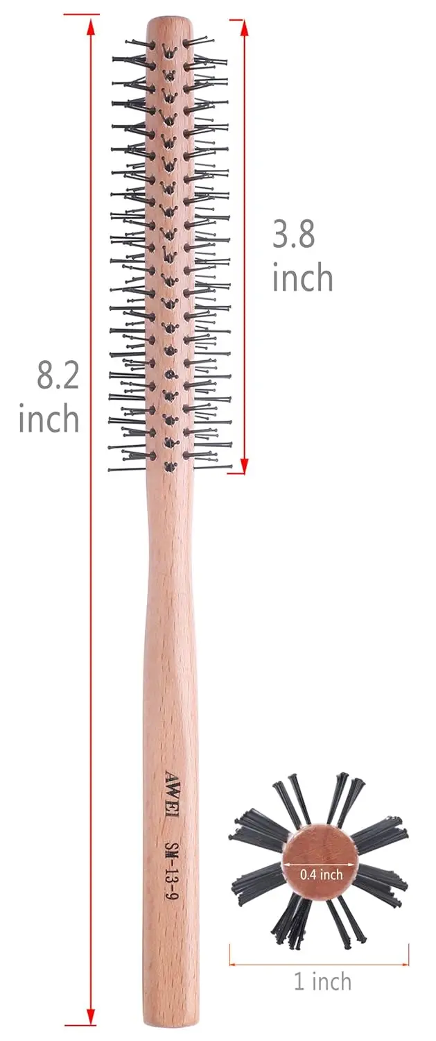 Achieve salon-worthy volume and perfectly styled short hair with our small round brush. Designed specifically for short hairstyles, bangs, and adding lift at the roots, this brush is your go-to tool for creating beautiful, bouncy looks. The 1-inch barrel is ideal for grabbing and volumizing even the finest hair, while the soft nylon bristles gently grip each strand without causing damage or snagging. The ball-tipped design ensures a comfortable experience, massaging your scalp as you style, promoting healthy hair growth. Its lightweight wooden handle allows for easy maneuverability and maximum control, making styling a breeze. Whether you’re looking to add curl, volume, or simply smooth your short hair, this brush delivers exceptional results every time. Blow-dry your bangs to perfection, create effortless waves, or add a touch of glamour to your everyday look. Experience the difference a quality round brush can make and unlock your hair’s full potential. This brush is a must-have in your styling kit.
