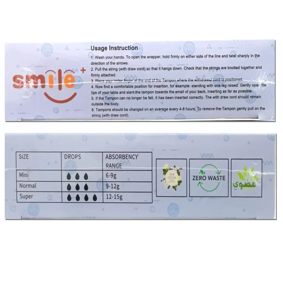 Smile Tampons 100% Cotton Natural Organic 64ct