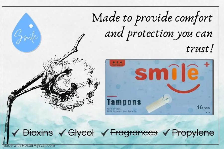 Experience reliable and comfortable protection with Smile Tampons. Made from 100% cotton, these tampons are crafted without toxins, pesticides, or synthetic chemicals, ensuring a natural and gentle experience. The comfortable fit expands to conform to your body, providing maximum protection and leak-free confidence you can depend on. Smile Tampons are also free of chlorine bleaching, dyes, and fragrances, making them a sleek and eco-conscious choice for your feminine hygiene needs. Choose Smile Tampons for a healthier and more environmentally responsible period care solution. Feel good about what you’re putting in your body and reduce your environmental impact at the same time. Get your 64ct pack today!