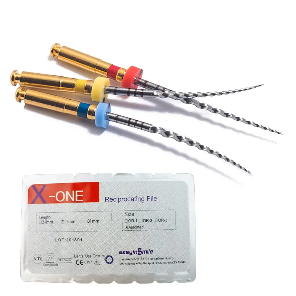 Elevate your endodontic procedures with the SNAWOP Endo Files X-One Niti Rotary Root Canal system. Engineered with reciprocating technology, the X-One files grant you unparalleled control, shaping the canal only when pressure is applied. Experience the confidence of precise instrumentation and reduced risk of file separation. These files simplify root canal treatment, often requiring just one NiTi instrument per canal. Benefit from the M-Wire Nickel-Titanium technology, which ensures exceptional flexibility and resistance to cyclic fatigue, the primary cause of file failure. Tackle even the most challenging cases, such as severely curved canals, with ease, as the M-Wire NiTi’s advantages become increasingly apparent. The files boast excellent mechanical strength properties, providing the ideal balance of flexibility to prevent canal transportation and hardness for optimal cutting efficacy. Each pack contains 3 files, ensuring you have the necessary tools for successful root canal treatments. Choose SNAWOP for precision, control, and reliability in endodontics.