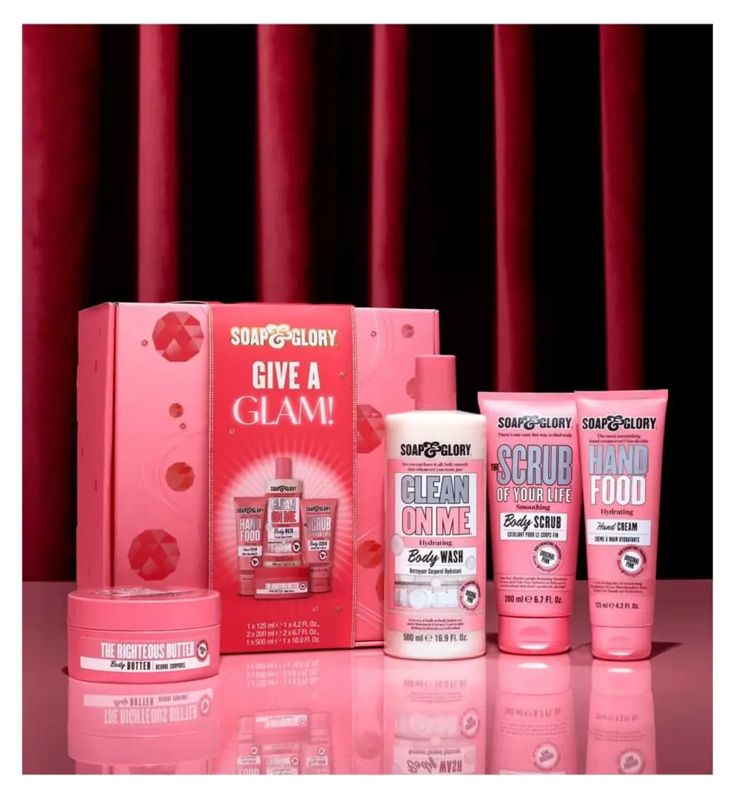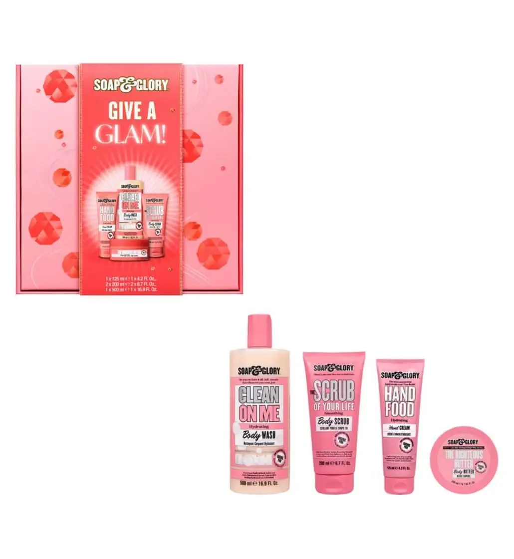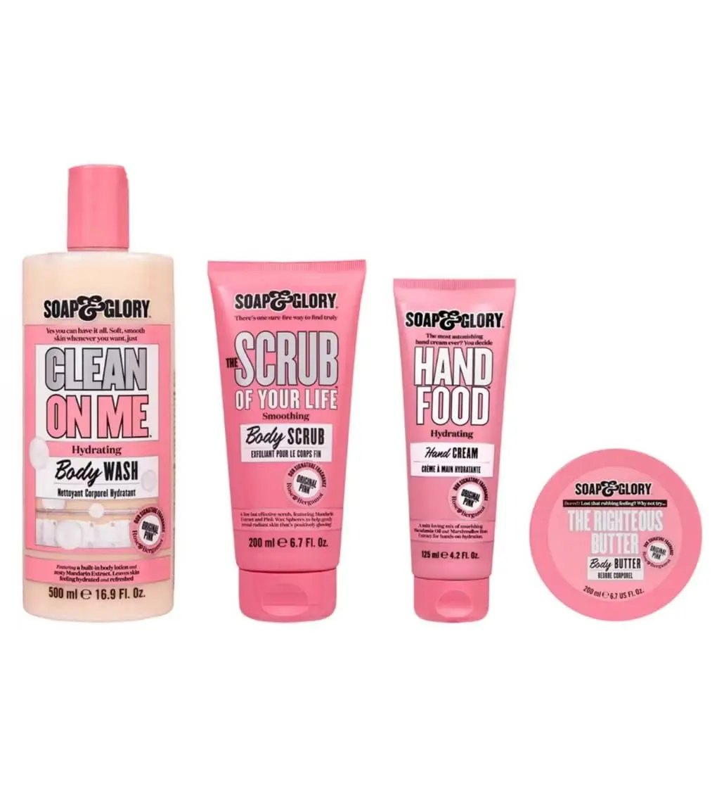 Inside this delightful gift set, you’ll discover a complete routine for achieving soft, smooth, and radiant skin. Start with Soap & Glory Clean On Me Body Wash, a rich and creamy formula that gently cleanses while enveloping you in a delectable scent. Follow with Soap & Glory Scrub Of Your Life Body Scrub, an invigorating exfoliant that buffs away dead skin cells, revealing a smoother and brighter complexion.