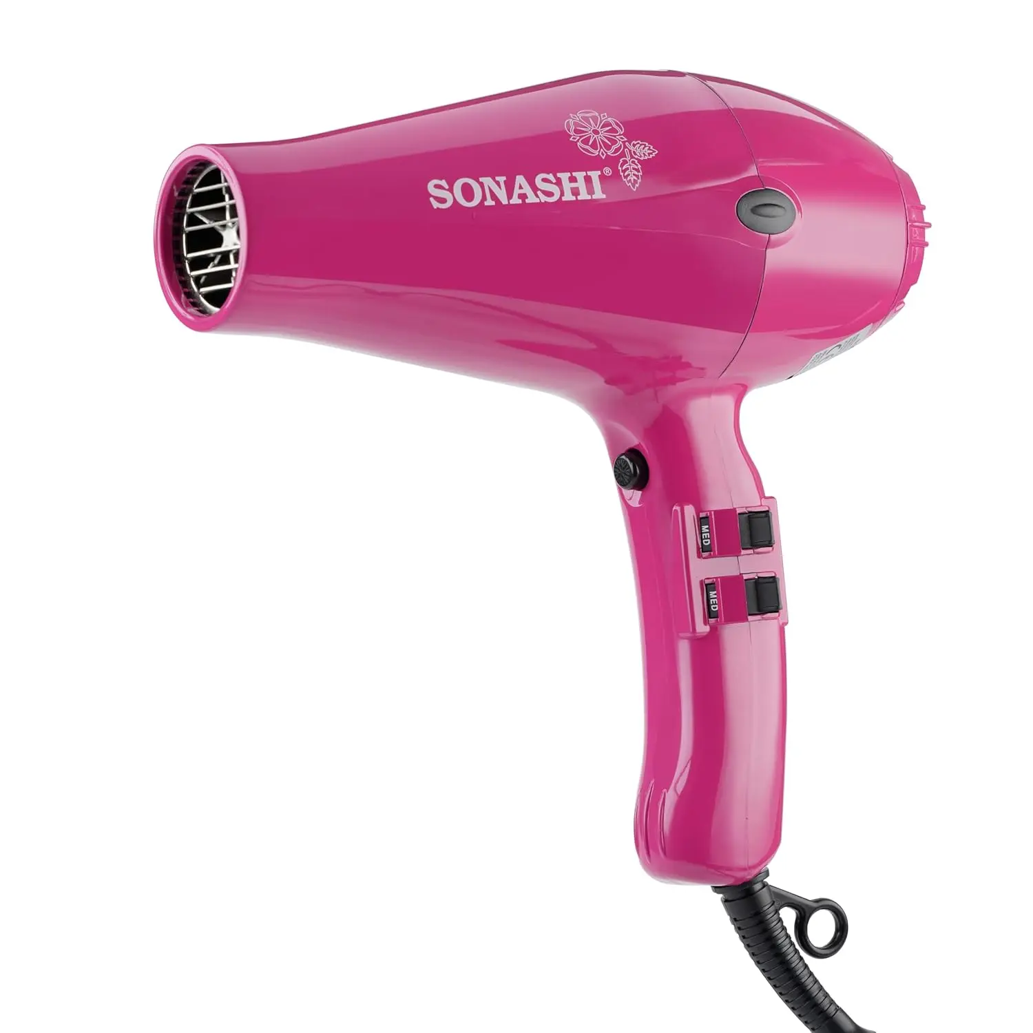 Achieve salon-worthy hair in the comfort of your own home with the Sonashi Hair Dryer! This professional-grade 2000W hair dryer delivers a powerful yet gentle drying experience, quickly drying your hair while locking in natural moisture for a shiny, healthy look. The Sonashi hair dryer is an essential personal grooming tool, perfect for achieving your desired hairstyle in no time. Designed with variable 2 heat and 2-speed settings, this AC motor hair dryer offers enhanced control, preventing overheating and allowing you to customize the airflow to your hair type and styling needs. Its flexibility makes it ideal for prepping for any occasion. The lightweight and compact design makes it a perfect travel companion, easily fitting into your luggage. The Sonashi hair dryer combines power, convenience, and hair-friendly technology to deliver the perfect blowout every time.