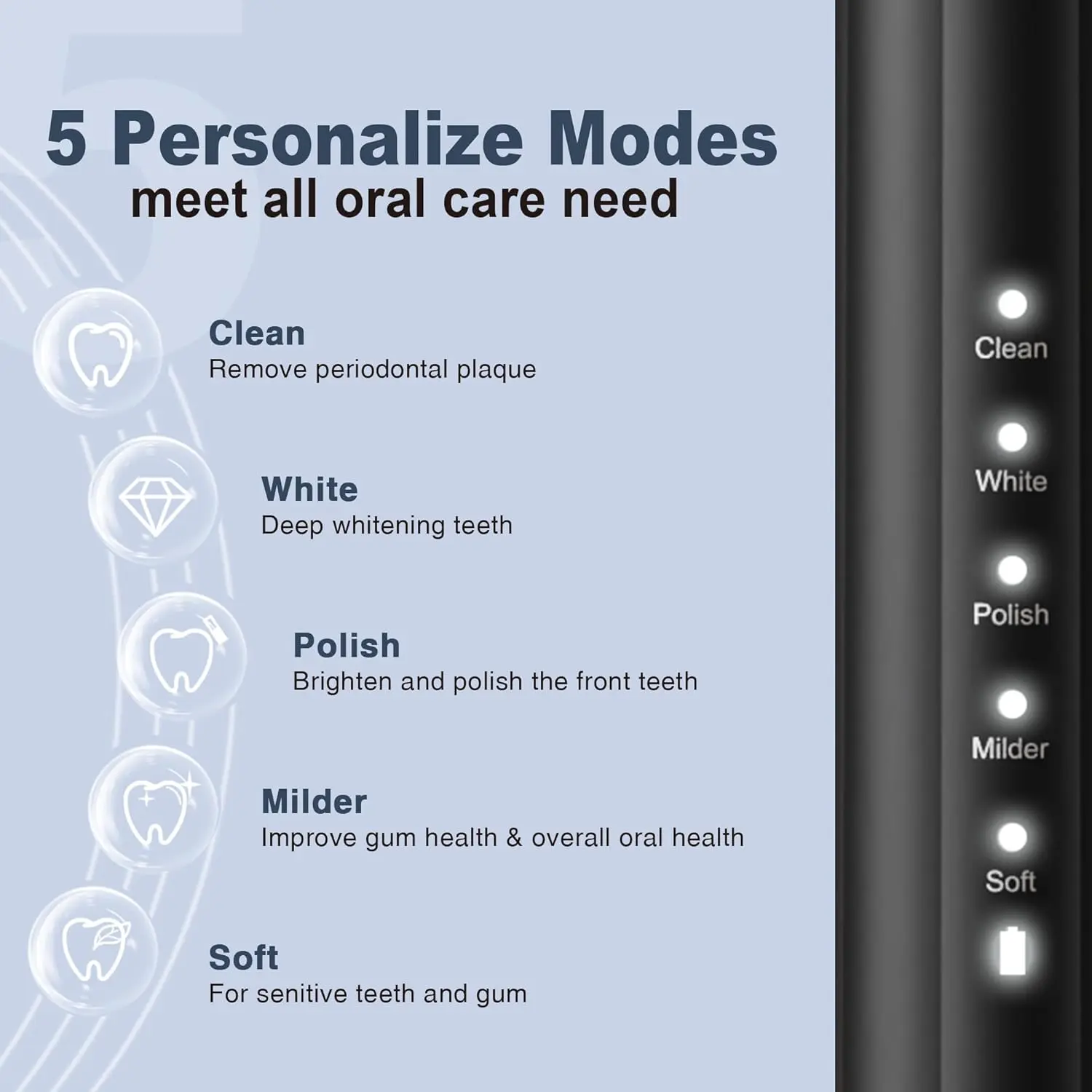 • 5 High-Performance Brushing Modes: Clean, White, Polish, Milder, Soft