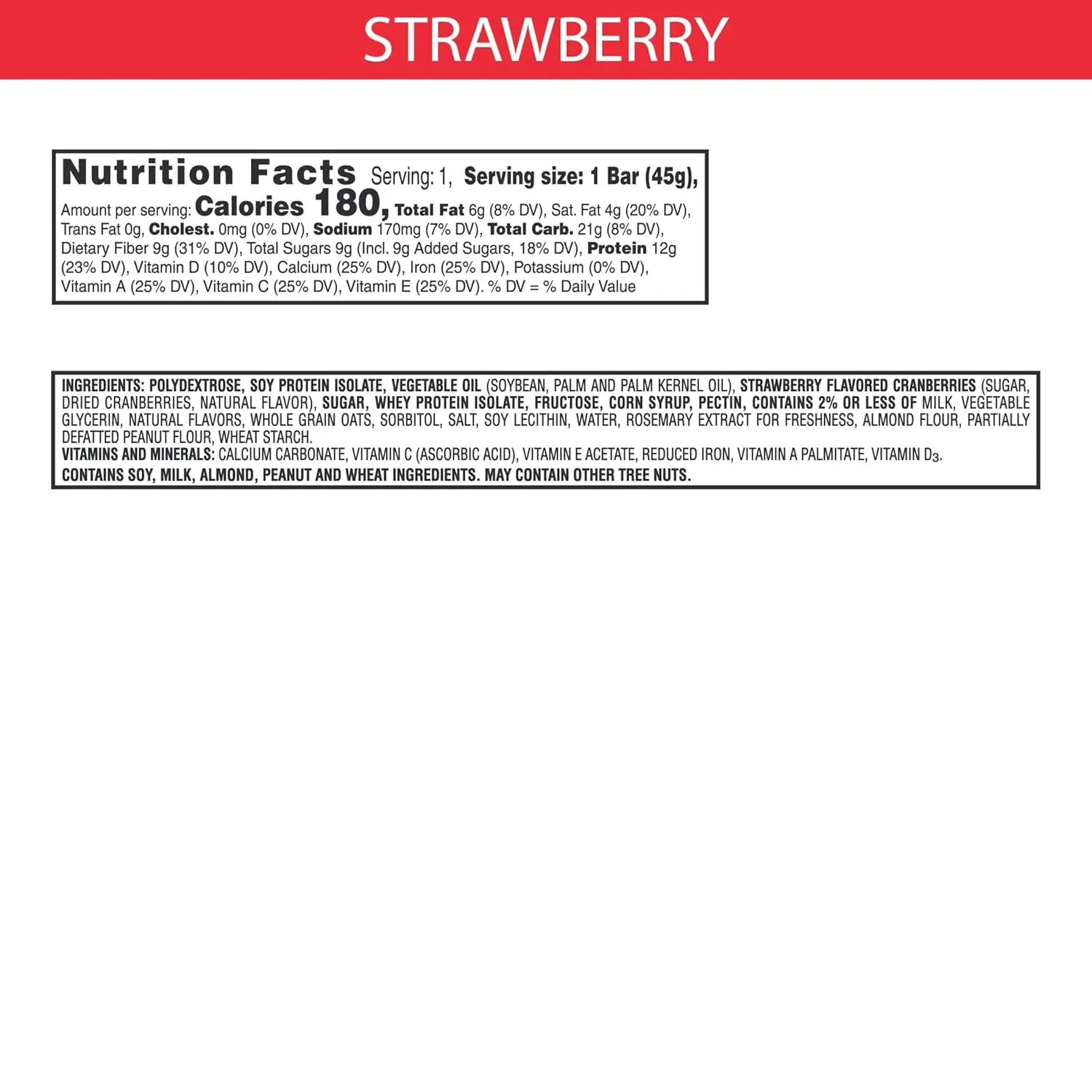 Fuel your day with Special K Strawberry Protein Meal Bars! These delicious and portable bars are designed to keep you energized and satisfied, no matter where life takes you. Each bar boasts a rich, creamy coating that gives way to delightful bursts of real strawberry flavor, making it a treat you can feel good about. Packed with 12g of protein (23% daily value) and 9g of fiber, these bars help you stay full and focused. They’re the perfect solution for busy mornings, afternoon slumps, or pre-workout fuel. Keep them on hand in your desk drawer, car, or gym bag for a convenient and nutritious snack whenever hunger strikes. With 20 individually wrapped bars in each package, you’ll always have a satisfying option at your fingertips. Be aware that this product contains soy, milk, almond, peanut and wheat ingredients; May contain other tree nuts. Enjoy the convenience and deliciousness of Special K Strawberry Protein Meal Bars – the perfect way to power through your day!