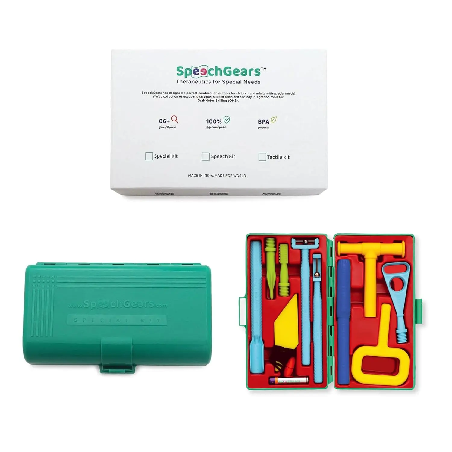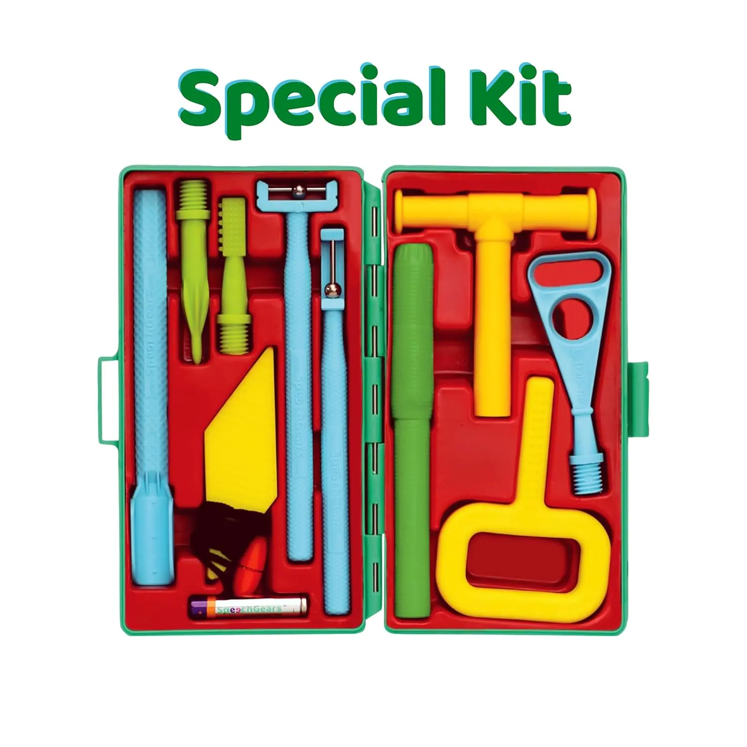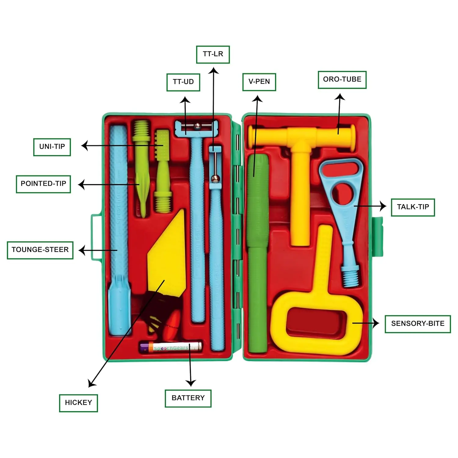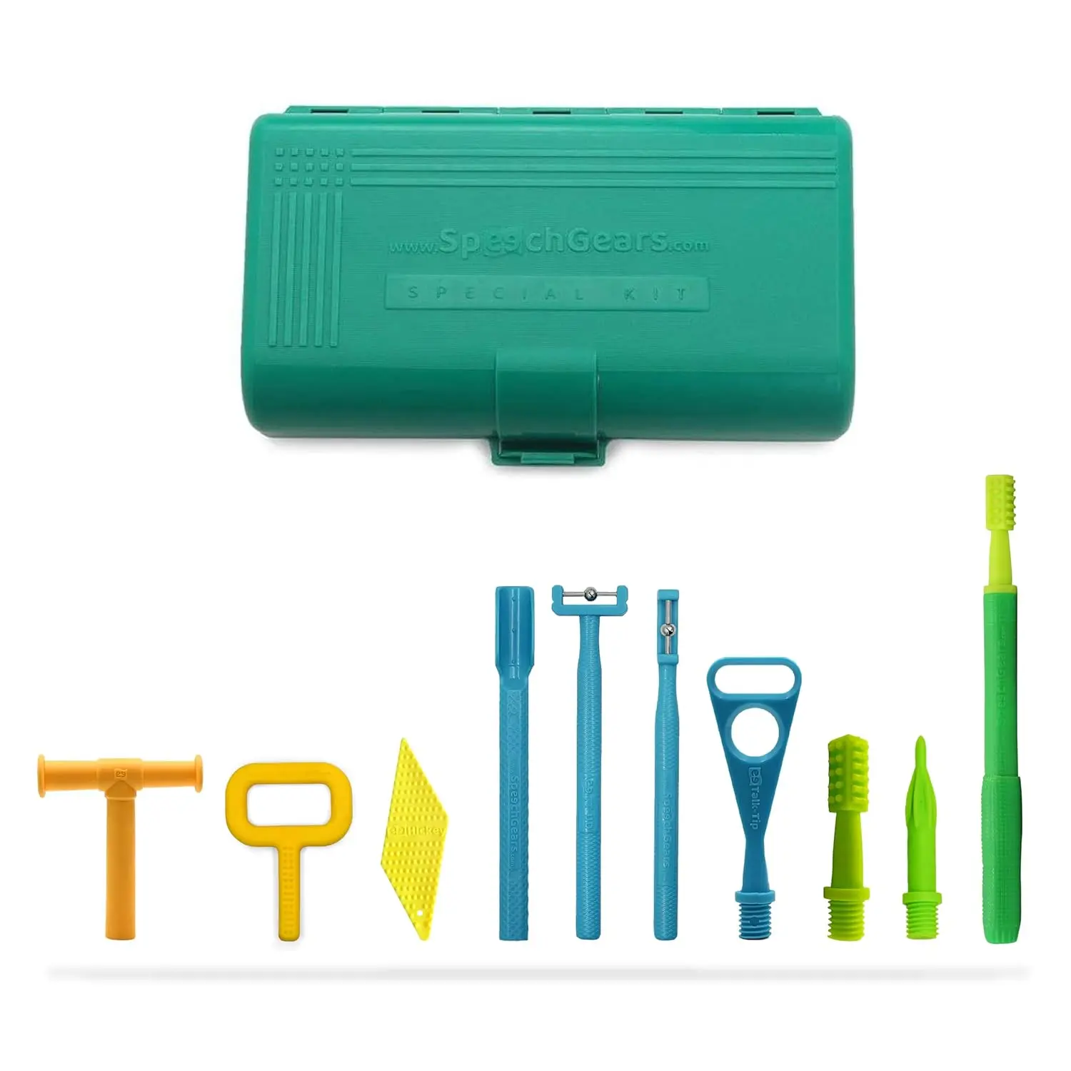 Unlock your child’s speech potential with the SPEECHGEARS Speech Tool Kit! This innovative kit is designed to assist with tongue lateralization, elevation, and limited tongue movement, crucial elements in speech development and oral motor skill enhancement. The TT-LR (Tongue Lateralization Right), TT-UD (Tongue Up/Down), and Tongue-Steer tools offer targeted support for improving articulation and oral motor control. Crafted from food-grade material, these tools are safe for oral exploration, but it’s important to remember that they are specifically for speech therapy exercises and not intended for chewing or biting. This kit provides a fun and engaging way to work on specific tongue movements, making therapy sessions more effective. Use under supervision of therapists or trained professionals.