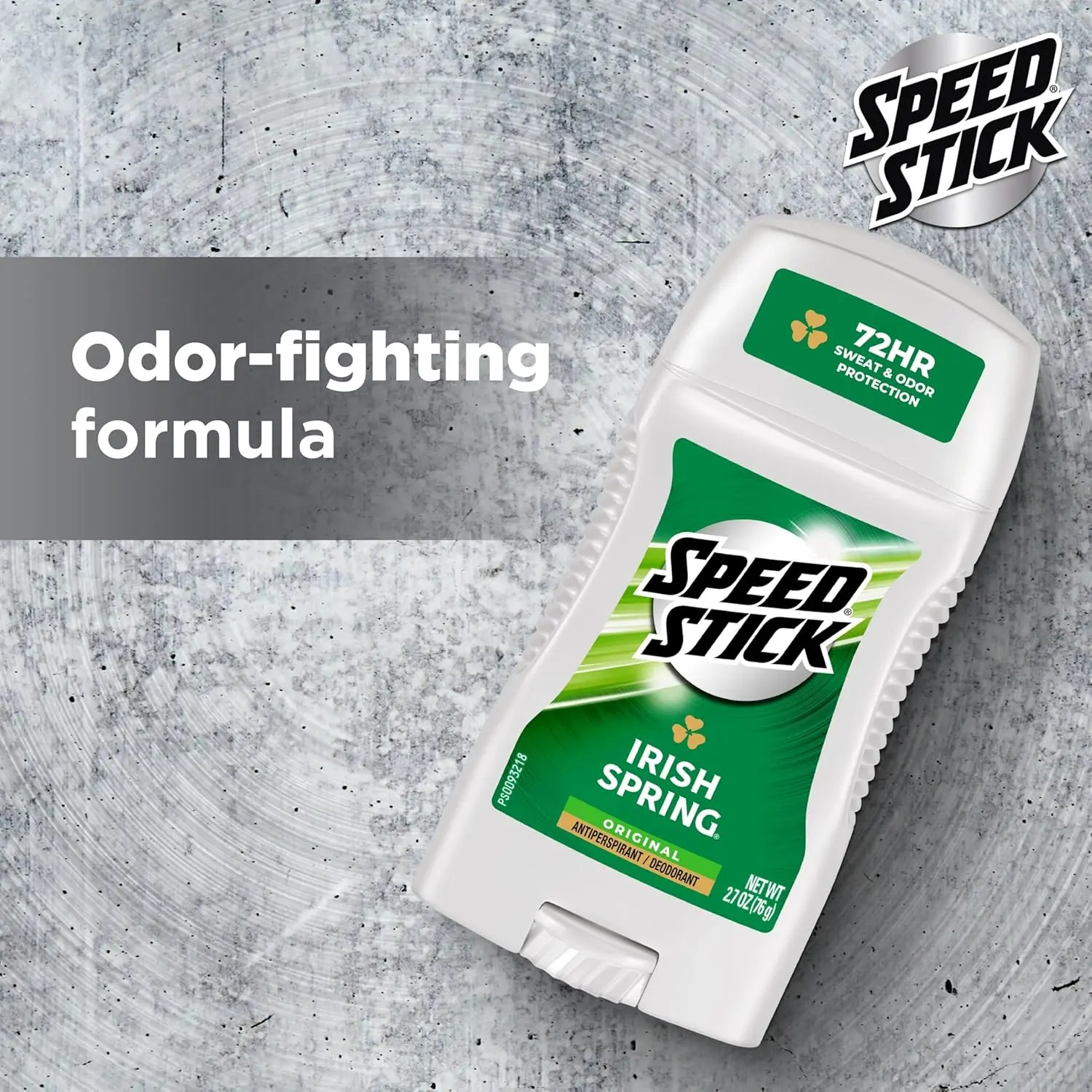 Experience all-day confidence with Speed Stick Irish Spring deodorant. This powerful formula provides 24-hour odor and wetness protection, keeping you feeling fresh and dry from morning till night. The invigorating Irish Spring scent delivers a clean, classic fragrance that will keep you feeling refreshed and ready to tackle anything. Stay confident and comfortable throughout your busy day with the reliable protection of Speed Stick Irish Spring. This deodorant is designed to provide long-lasting defense against odor and wetness, ensuring you stay feeling clean and revitalized, no matter what challenges come your way. Perfect for daily use, Speed Stick Irish Spring offers a convenient and effective solution for maintaining freshness and confidence. Enjoy the classic, crisp scent of Irish Spring combined with the trusted protection of Speed Stick.