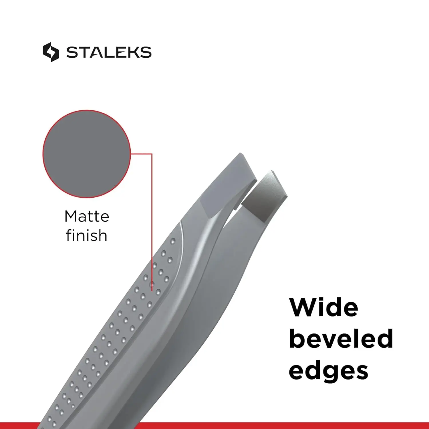 The gritted handle offers an excellent grip, even when your hands are slightly damp or oily. This enhanced grip provides greater control and reduces the risk of slippage, further improving accuracy and safety. The polished outer side of the working surfaces minimizes friction and reduces the risk of skin irritation or damage. This thoughtful design helps to prevent post-procedure redness and discomfort, leaving your skin looking and feeling smooth and healthy. Invest in the STALEKS Wide Slant Eyebrow Tweezers Classic 15/3 and experience the perfect blend of precision, comfort, and durability. They are an essential tool for anyone who values perfectly groomed eyebrows.