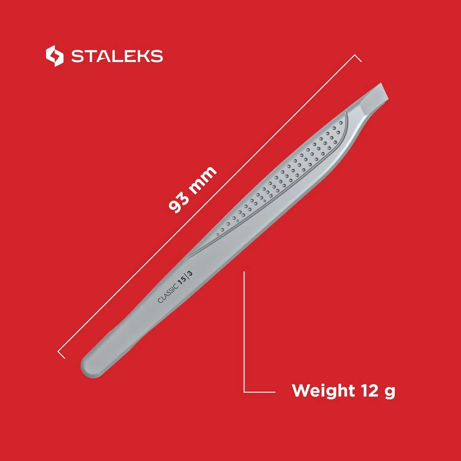 Achieve perfectly shaped eyebrows with the STALEKS Wide Slant Eyebrow Tweezers Classic 15/3. These meticulously crafted tweezers are designed for both professional and personal use, offering unparalleled precision and comfort. The wide, slanted edges provide a secure and comfortable grip, allowing for controlled and accurate hair removal. Say goodbye to frustrating slips and hello to flawlessly sculpted brows.