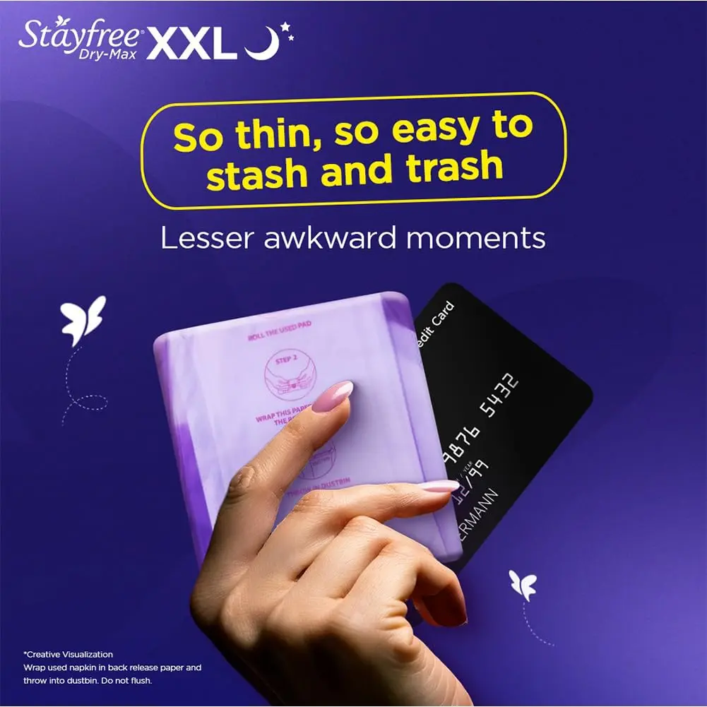 Experience unparalleled overnight protection with Stayfree Dry Max All Night XL Sanitary Pads. Designed for women who demand worry-free sleep during their period, these pads provide superior absorbency and comfort. The extra-long length and wider back offer maximum coverage to prevent leaks, no matter how you move during the night. The Dry Max cover ensures a dry and comfortable feel, wicking away moisture quickly and efficiently. The flexible wings keep the pad securely in place, providing added security and preventing bunching or shifting. With 28 pads in each pack, you’ll have a reliable supply to get you through your cycle with confidence. Say goodbye to restless nights and hello to peaceful, uninterrupted sleep with Stayfree Dry Max All Night XL Pads. Feel confident and secure, knowing you’re protected by Stayfree’s trusted leak protection technology. These pads are designed with your comfort in mind, allowing you to move freely and comfortably throughout the night. The Dry Max technology ensures that you stay dry and fresh, while the extra-long length provides added coverage where you need it most. Enjoy the peace of mind that comes with knowing you’re protected by a reliable and effective sanitary pad. Make Stayfree Dry Max All Night XL Pads your go-to choice for overnight protection and experience the difference for yourself.