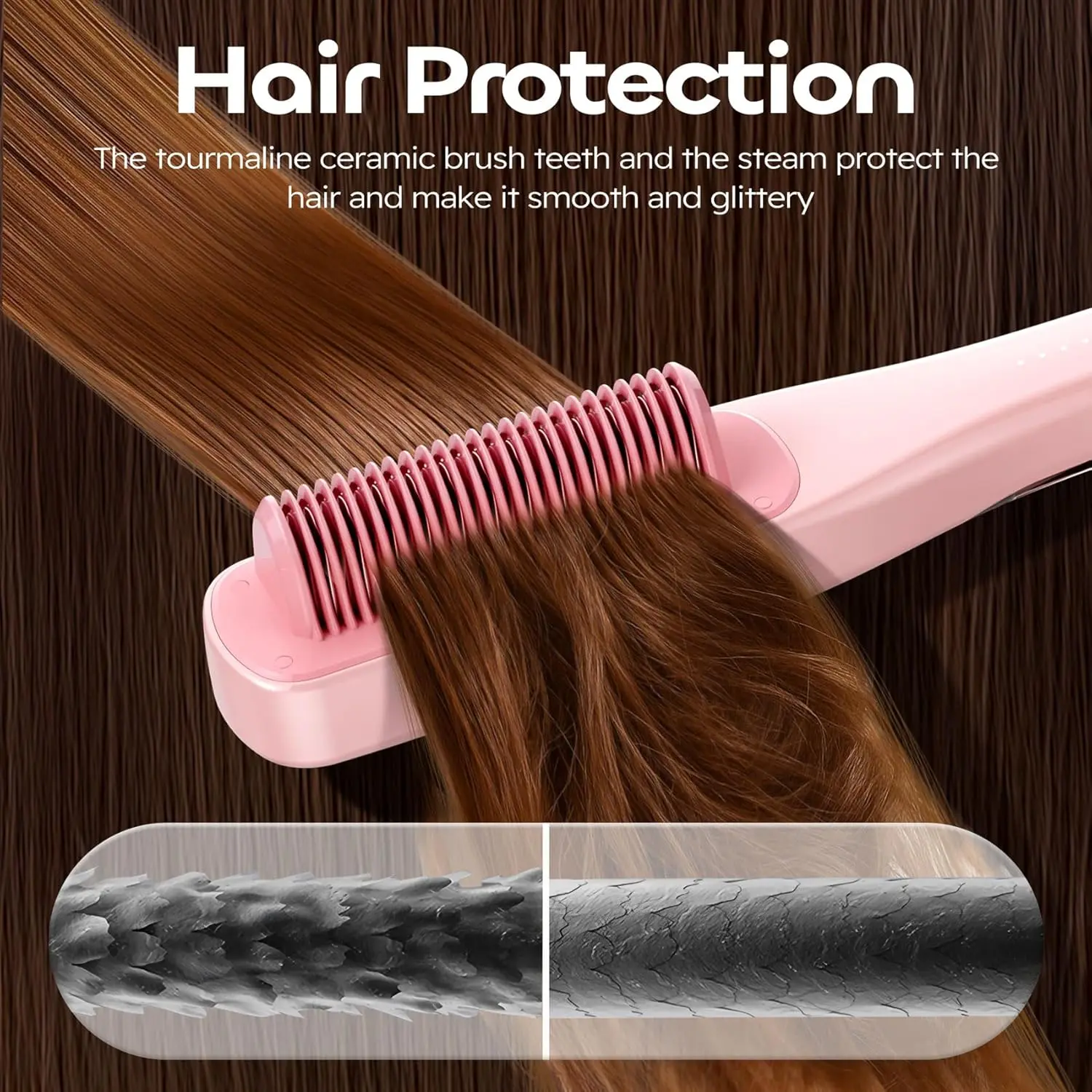 Our Steam Hair Straightening Brush utilizes advanced ultrasonic and recirculating heating technology to deeply nourish each strand of hair. The nano-mist nozzles emit a gentle water vapor that infuses your hair with essential moisture, preventing dryness and frizz while dramatically enhancing shine. Experience the difference that true hydration makes!