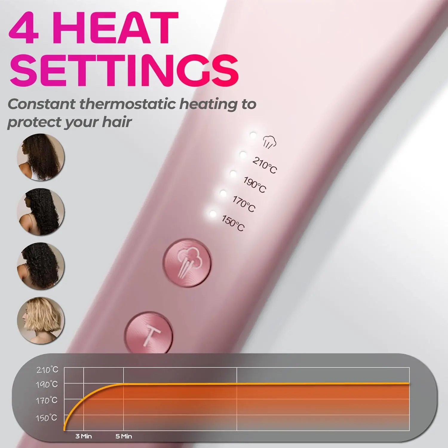 • 4 adjustable temperature settings for all hair types.