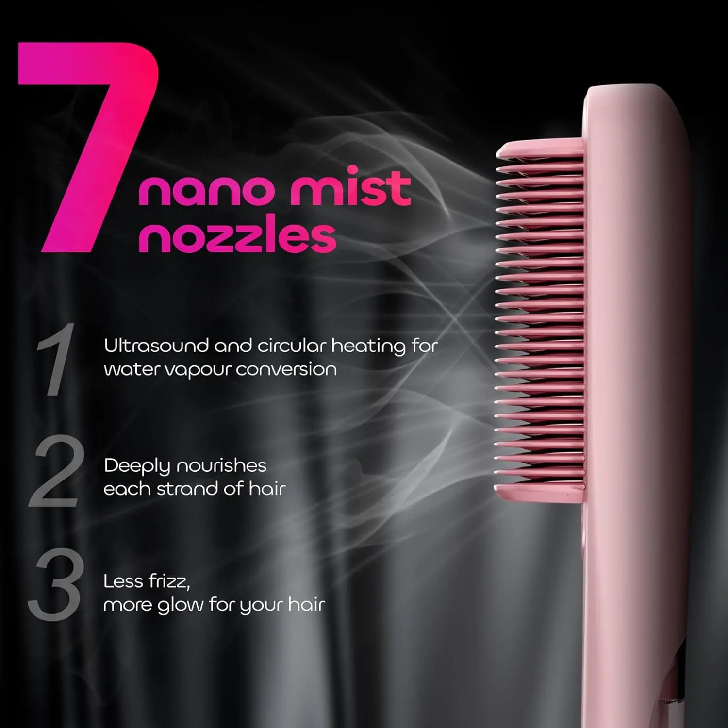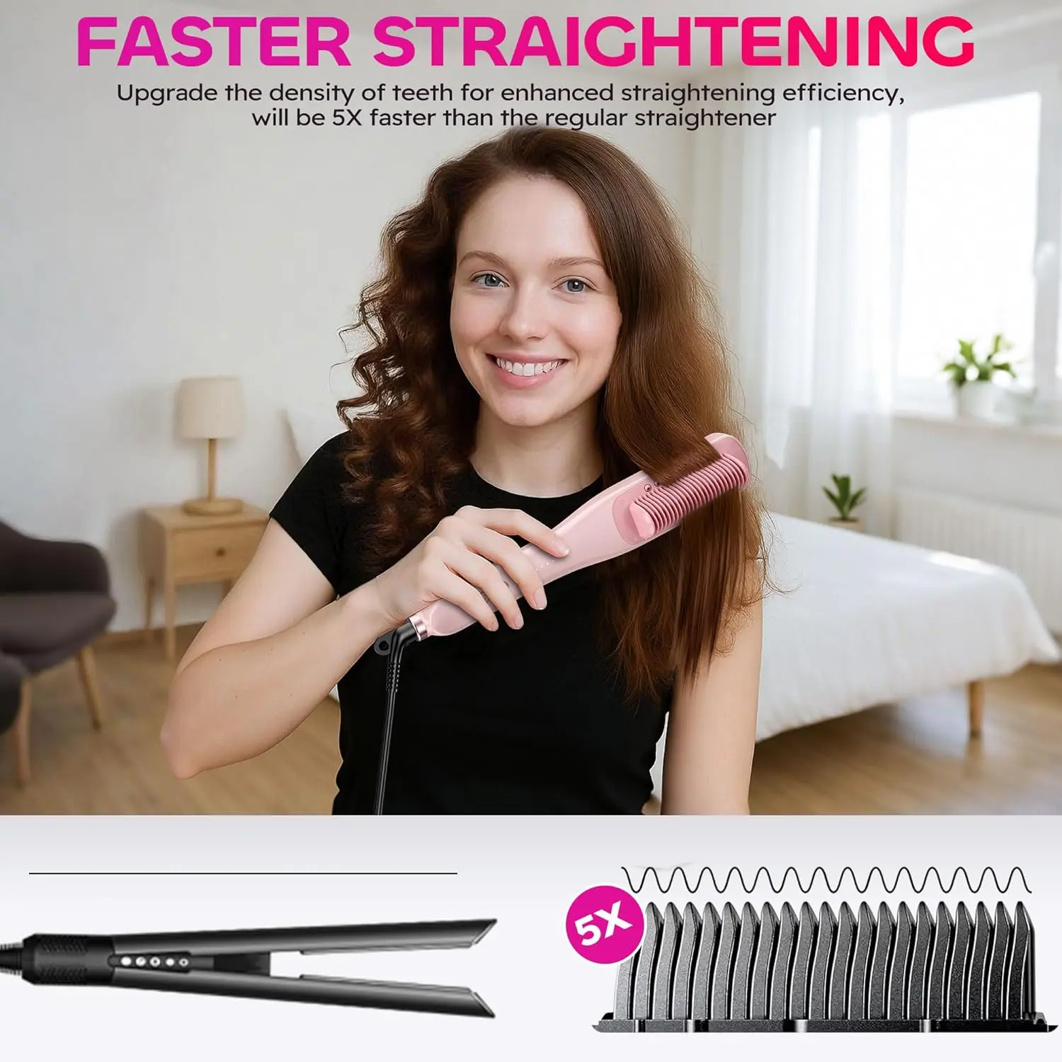 • 3-in-1: Straightener, comb, and steam styler.