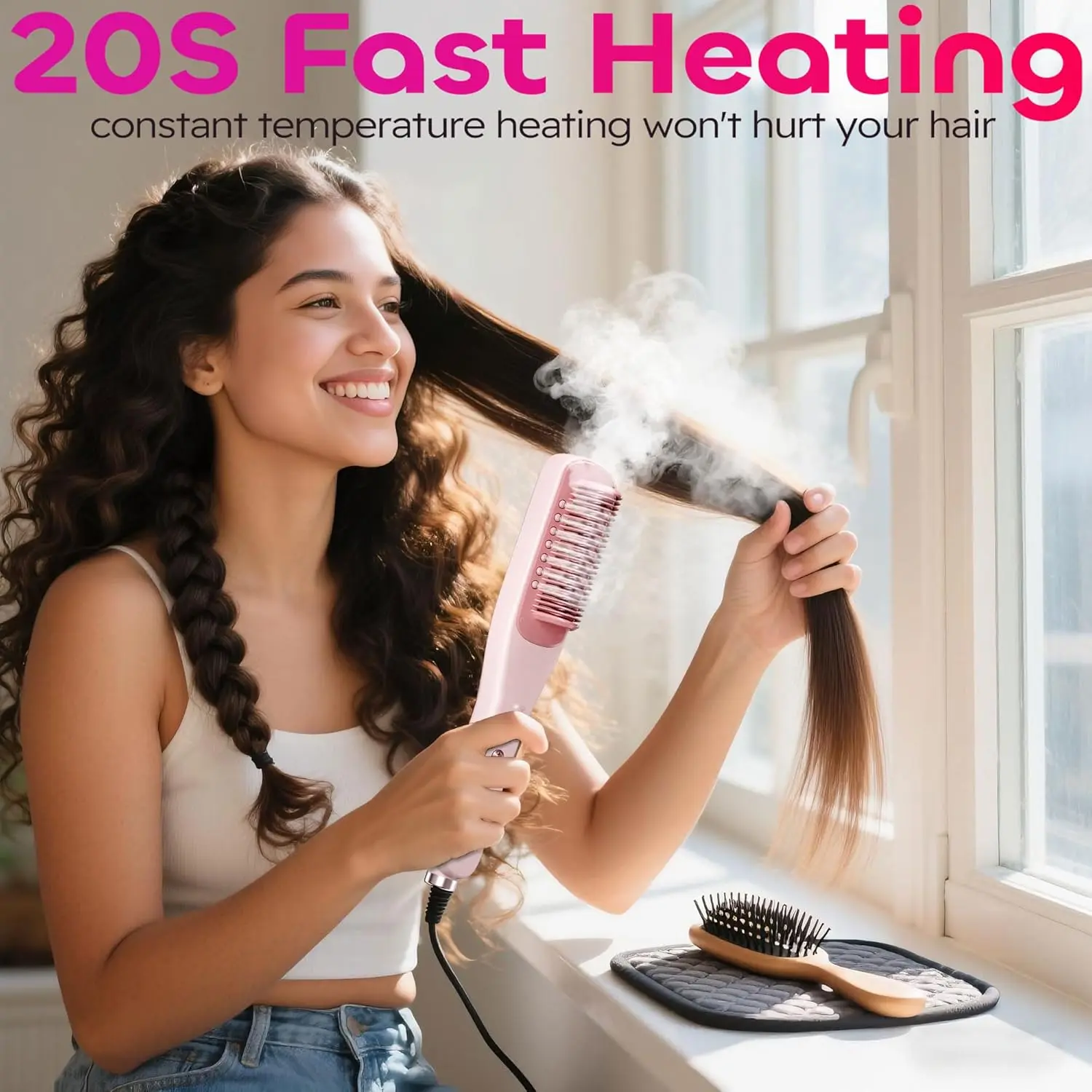 Steam Hair Straightener Brush, Anti Scald, Fast Heat