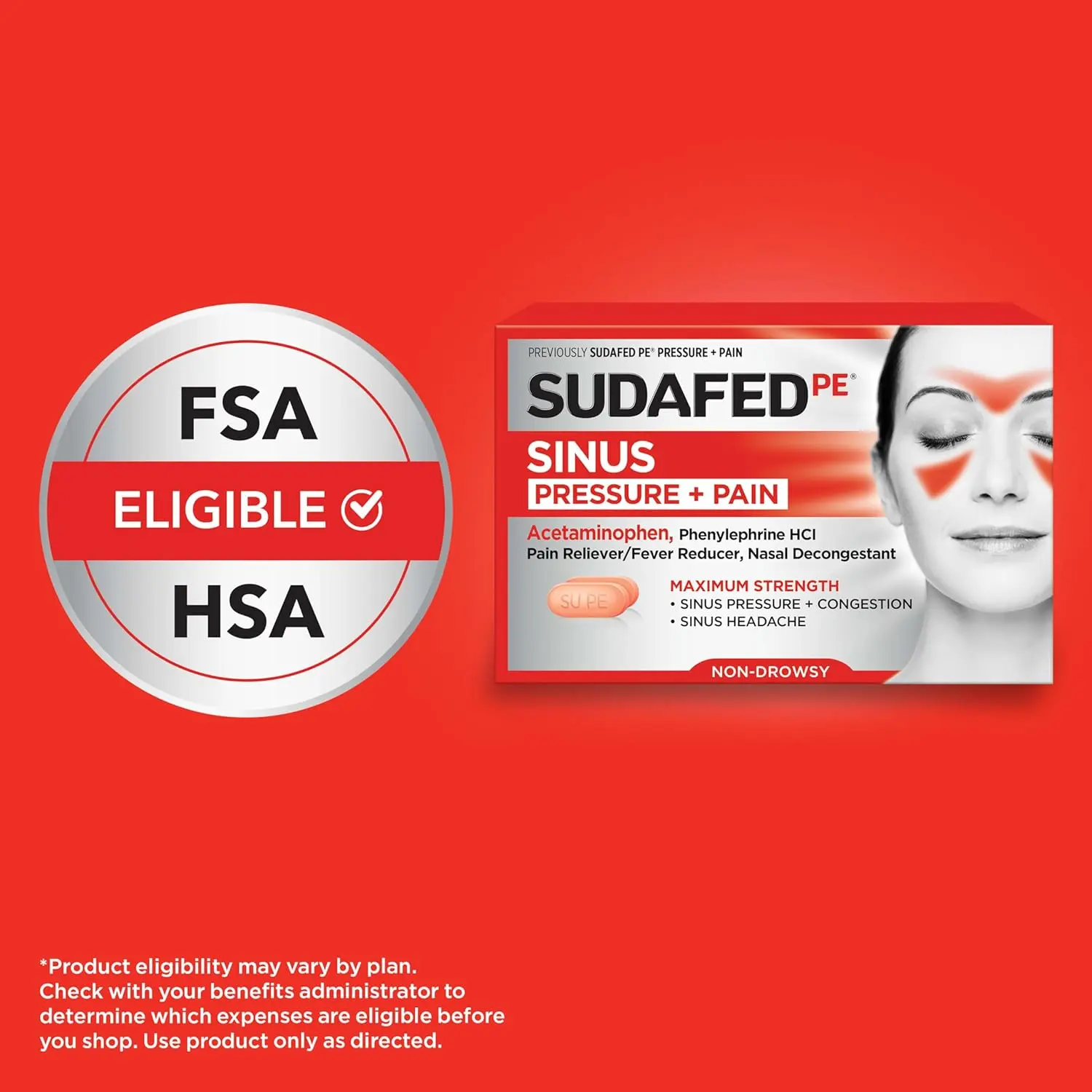 This maximum-strength formula not only relieves sinus congestion and pain but also provides temporary relief from nasal congestion associated with hay fever, upper respiratory allergies, and the common cold. Its non-drowsy formulation ensures you can get the relief you need without feeling tired or sluggish, allowing you to stay productive and focused throughout the day. Sudafed PE Sinus Pressure + Pain Relief helps to promote sinus drainage, reducing the pressure and discomfort caused by blocked nasal passages. It also temporarily reduces fever and helps to alleviate headaches and minor aches and pains.
