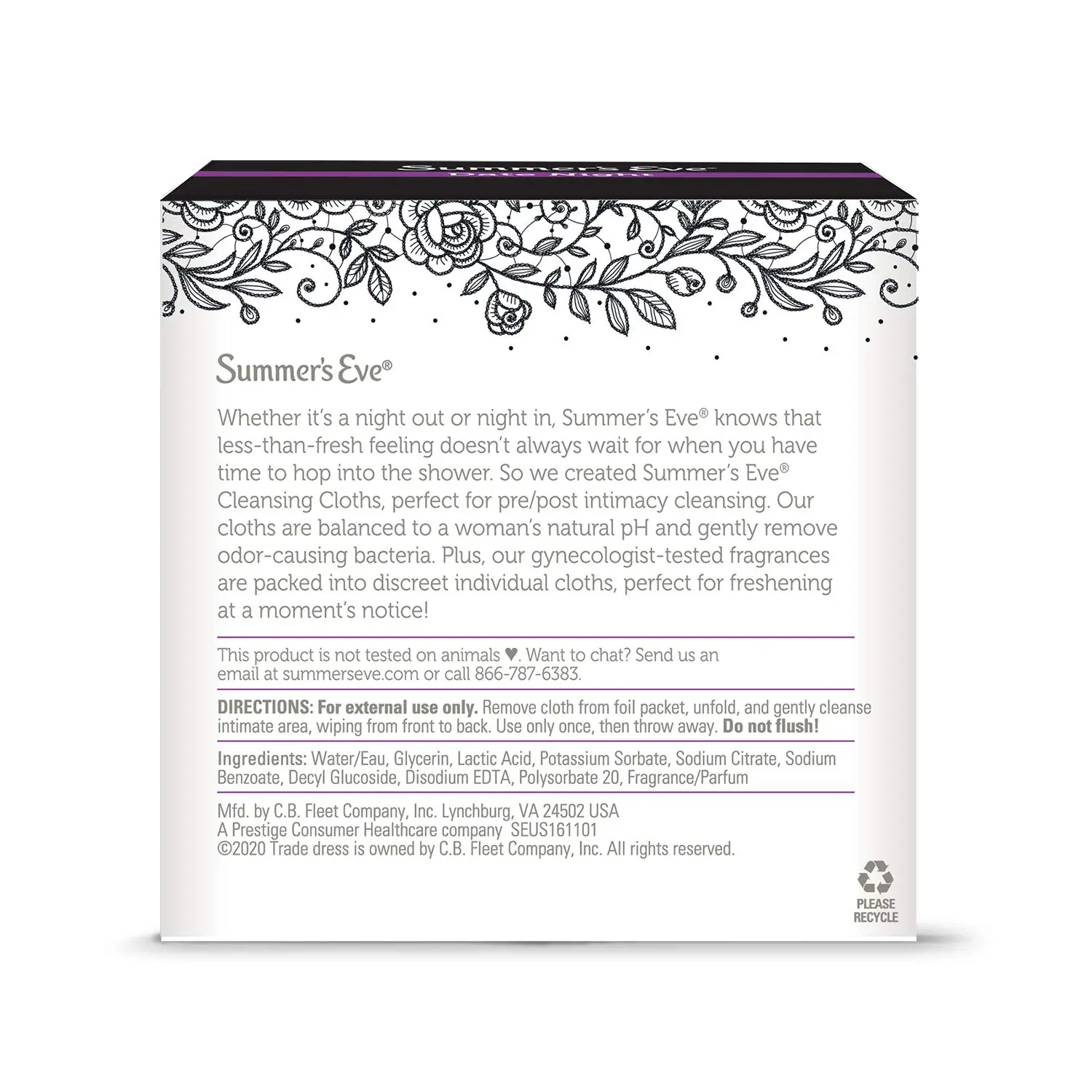 Summer’s Eve Date Night Cleansing Cloths cleanse and refresh with a sensual scent. Perfect for sensitive skin, they’re pH-balanced, gynecologist-tested, and free of dyes & parabens.