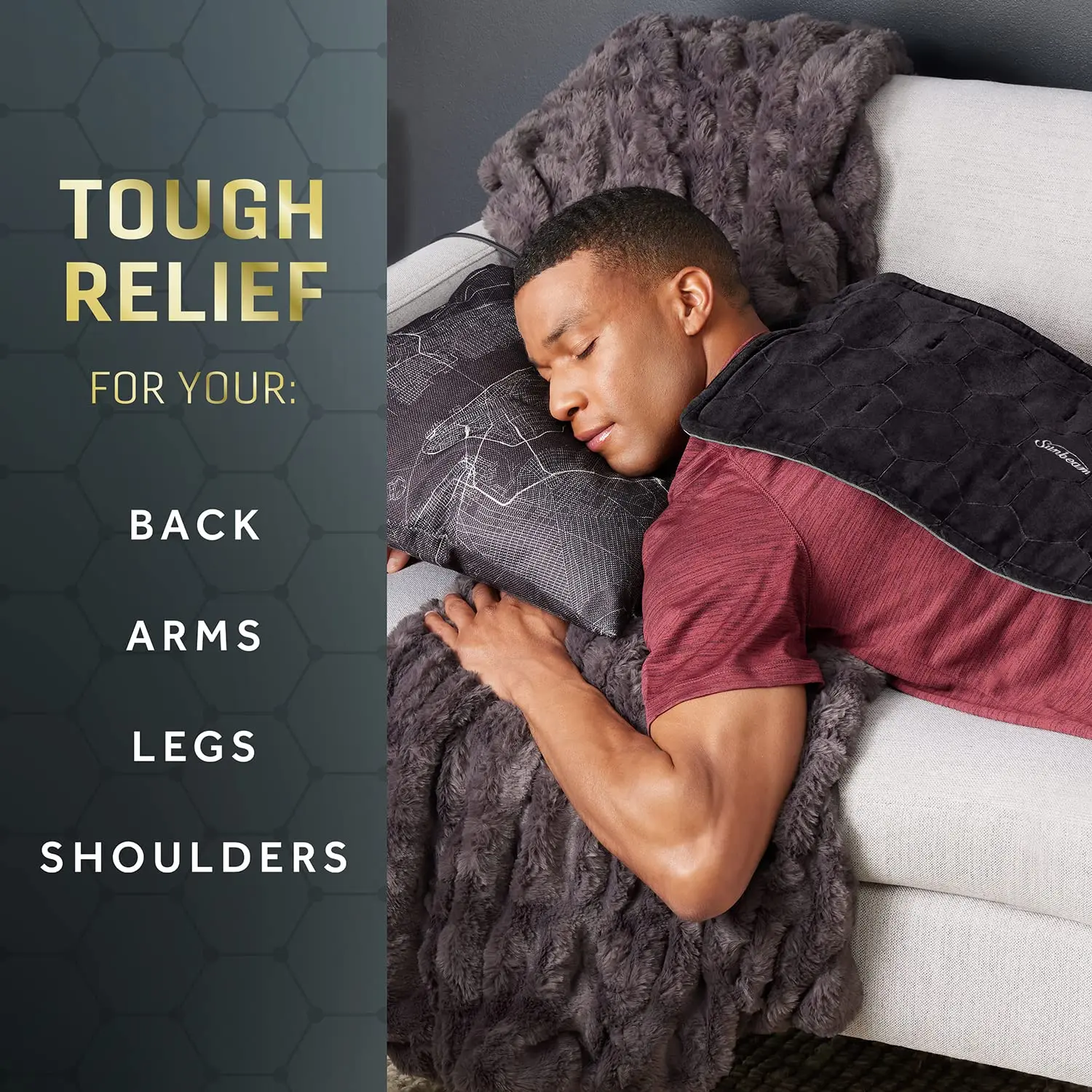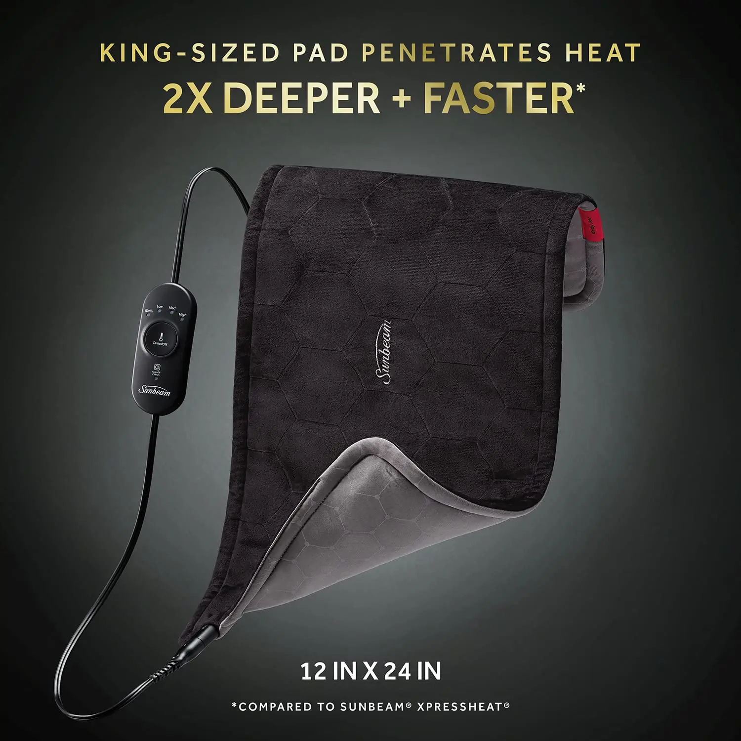 Convenient features include a 2-hour auto-shutoff for safety and peace of mind, and a long, 9-foot cord for flexible use wherever you need it most. The Sunbeam AdvancedHeat King Heating Pad is your go-to solution for fast, targeted, and lasting pain relief. Get back to feeling your best with the power of advanced heat technology. Enjoy the comfort and convenience of a king-sized pad that provides superior heat penetration for effective pain management. The Sunbeam AdvancedHeat King Heating Pad is designed to provide deep, penetrating heat where you need it most. With its advanced graphene heating technology, you’ll experience faster and more effective pain relief than ever before. Say goodbye to muscle aches and tension with this innovative heating pad. The generous size provides ample coverage for your back, shoulders, legs, and arms, delivering soothing warmth exactly where you need it.