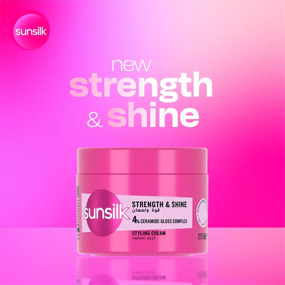Sunsilk Strength & Shine Styling Cream gives you 10X stronger, 2X smoother hair with ultra mirror shine! Formulated with CERA-GLOSS COMPLEX for vibrant, healthy-looking hair.