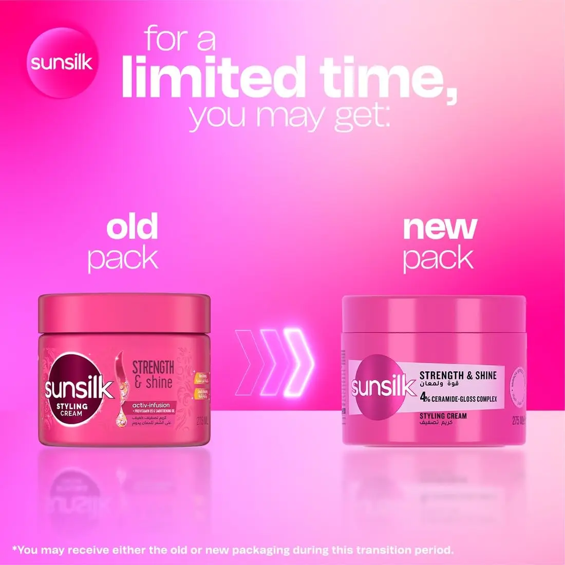 • FRESH NEW LOOK for your favorite Sunsilk styling cream.