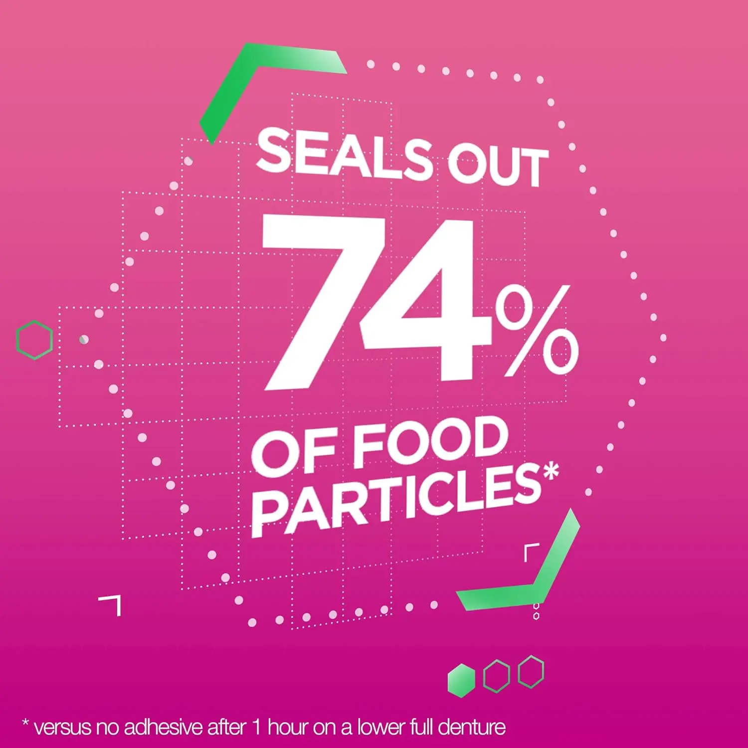 • Seals out up to 74% more food particles (vs. no adhesive)