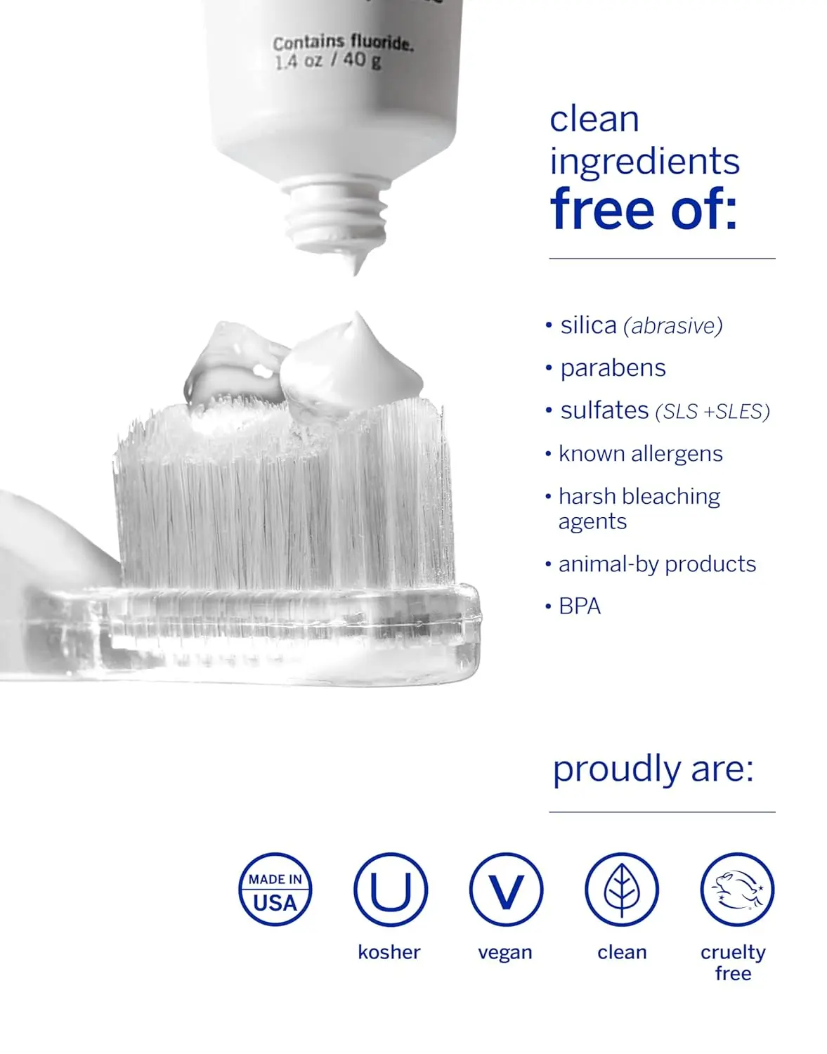 • Safely whitens teeth without harsh abrasives or bleaches.