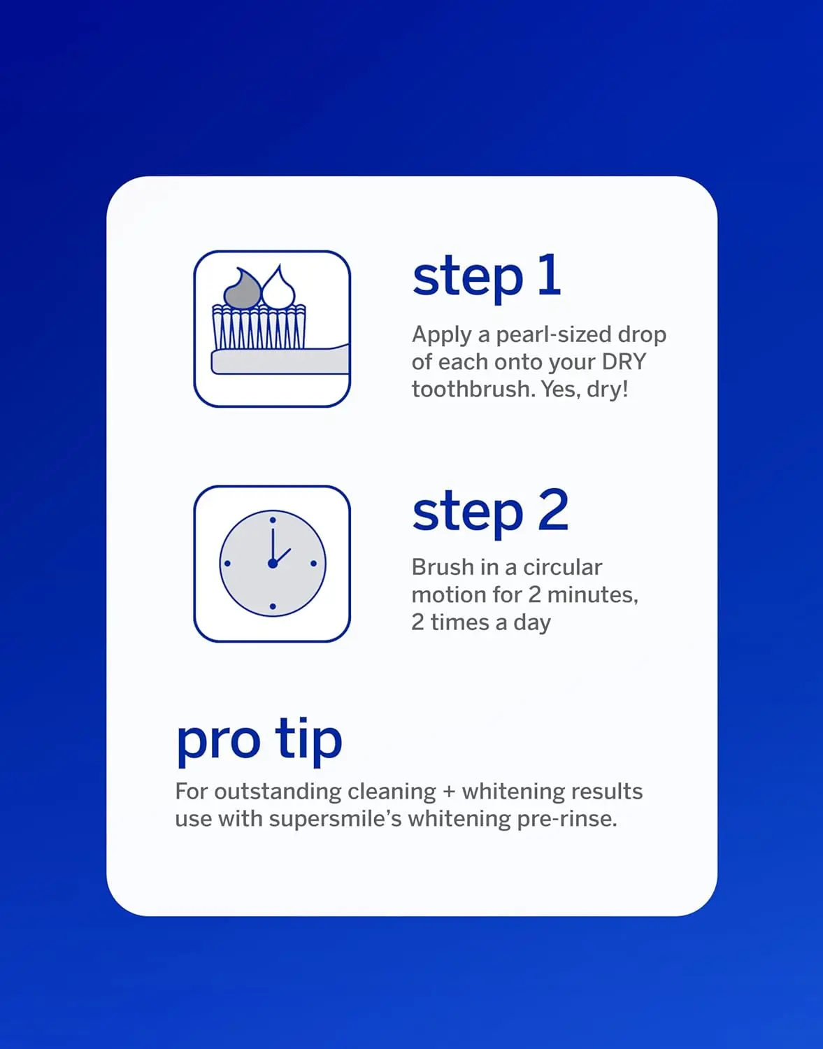 Achieve a brighter, more confident smile with the Supersmile Whitening System. This innovative system gently and effectively whitens teeth without the use of harsh abrasives or bleaches, making it safe for daily use. Developed by the renowned “Father of Aesthetic Dentistry,” Dr. Irwin Smigel, this system not only whitens but also remineralizes teeth, strengthening enamel and promoting overall oral health. It seamlessly integrates into your existing routine – simply brush twice a day – no complicated procedures or time-consuming steps required. The gentle formula is also safe and effective for use on dental restorations, including bonding, caps, veneers, and dentures, ensuring a uniformly bright smile. Made in the USA, the Supersmile Whitening System is the number one home whitening kit recommended by cosmetic dentists, providing professional-level results from the comfort of your own home. Experience the difference and unlock a radiant, healthy smile with Supersmile. This product helps to achieve a perfect smile without any harsh chemicals. Made with the best dental standards.