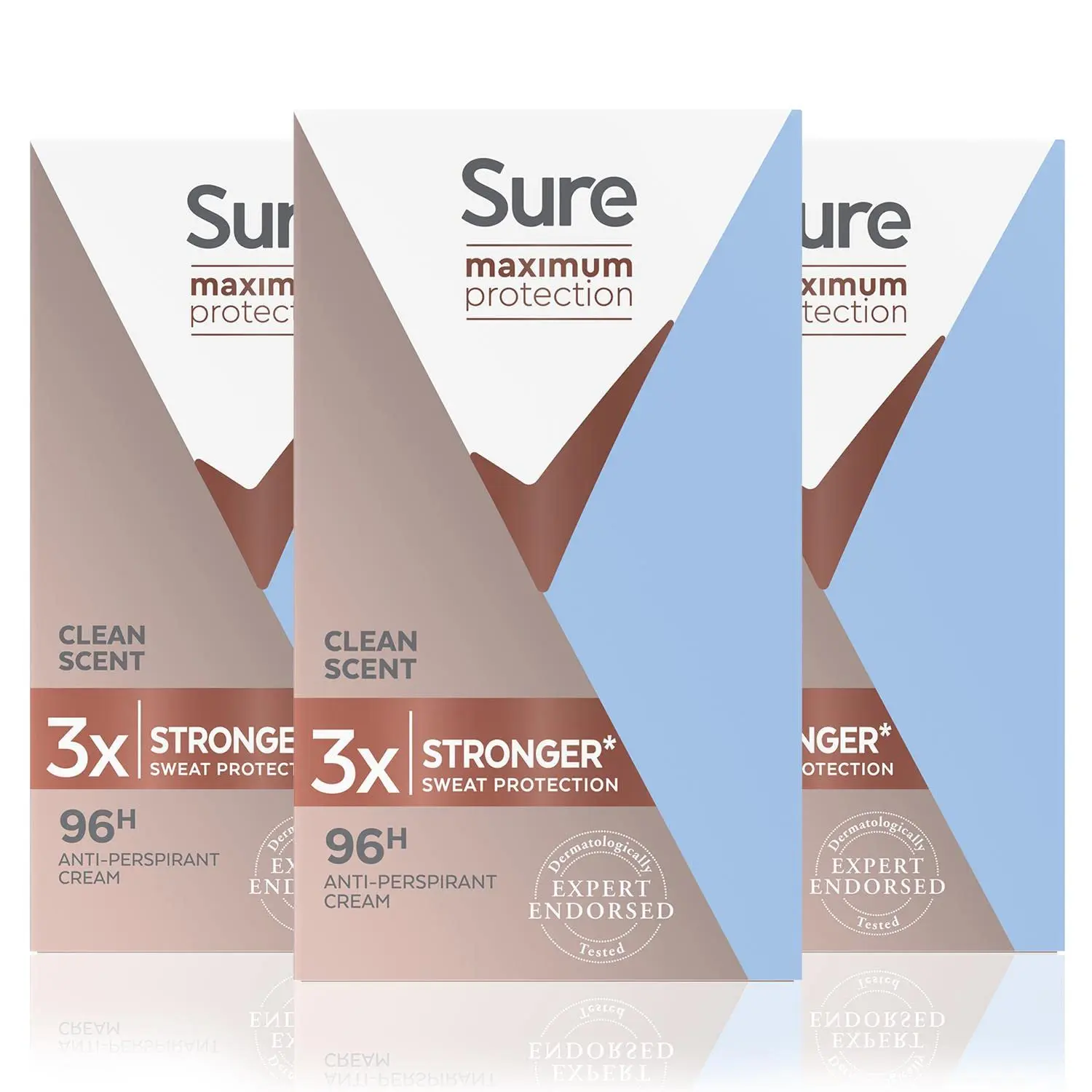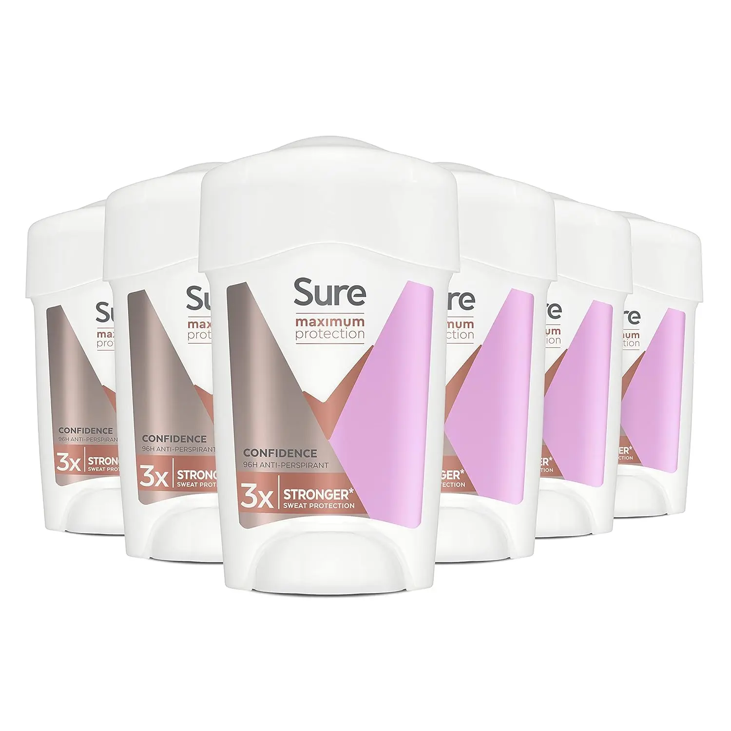 Experience ultimate confidence with Sure Maximum Protection Confidence Cream Stick Anti-perspirant Deodorant. This powerful deodorant provides Sure’s most effective 96-hour protection against sweat and odour, ensuring you stay fresh and dry all day long. Our advanced TRIsolid formula works in harmony with Sure’s anti-perspirant technology to eliminate odour at its source, leaving you with a clean, invigorating scent. Enjoy the bright, crisp aroma of fresh apple delicately blended with hints of rose and jasmine, creating a fragrance that uplifts and revitalizes your senses. Sure Maximum Protection, from the UK’s No.1 anti-perspirant brand, offers 3x stronger* sweat protection, giving you the confidence to tackle any challenge. Our unique MotionSense technology responds directly to your movements, releasing bursts of freshness when you need it most. This highly effective anti-perspirant deodorant stick is carefully formulated with a special blend of skin-moisturising ingredients, making it gentle enough for everyday use and kind to your skin. Dermatologically tested and endorsed by experts, our anti-perspirant deodorant cream provides reliable protection you can trust. Sure Maximum Protection Confidence Anti-perspirant Deodorant Cream Stick is designed to protect you when you need it most, empowering you to embrace every step with unwavering confidence. Trust Sure to keep you feeling fresh, dry, and in control, no matter what the day brings. Sure, it won’t let you down.
