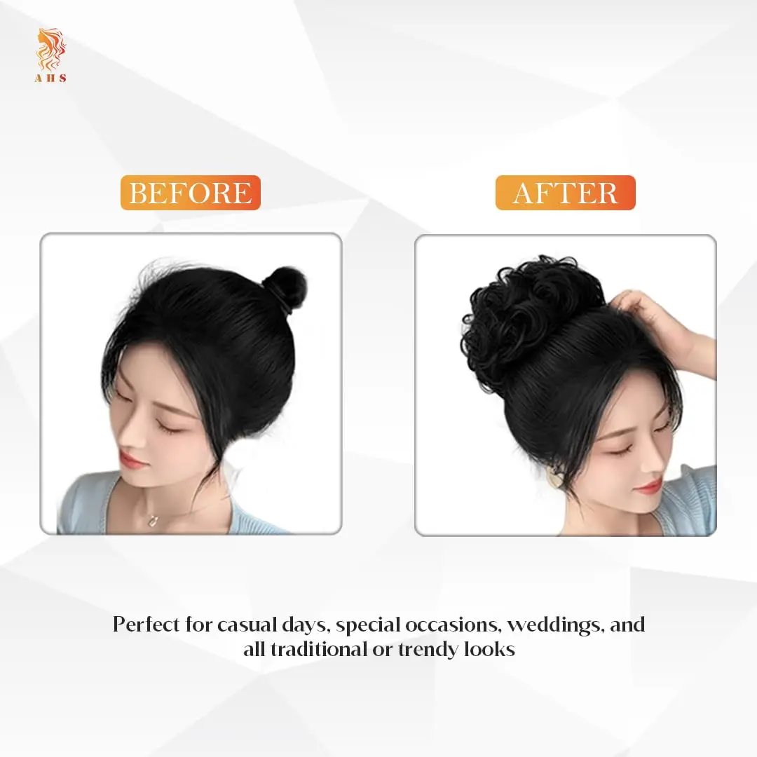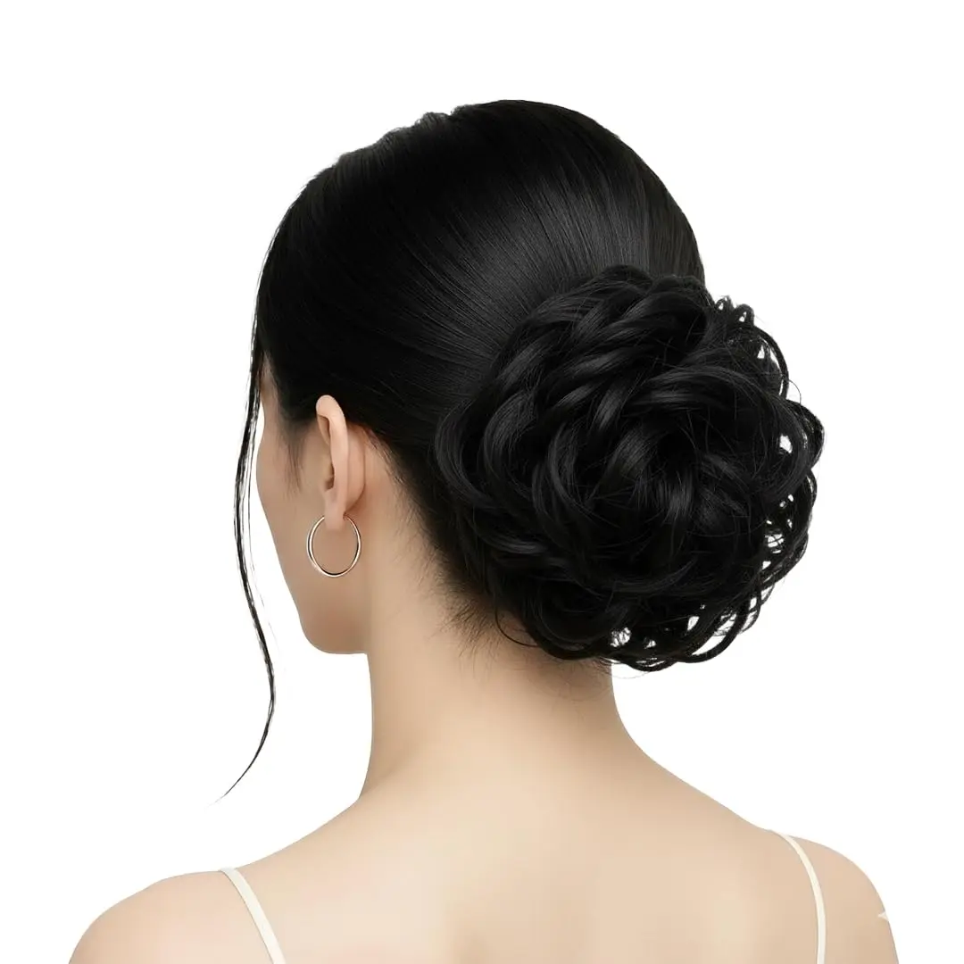 Elevate your everyday look or transform your style for a special occasion with this stunning synthetic hair bun extension. Crafted from high-quality synthetic fibers, this bun offers a natural-looking and realistic appearance that seamlessly blends with your own hair. The black color provides a classic and versatile option, suitable for a wide range of hair colors and styles. Enjoy the ease and convenience of a style transformation without the commitment or cost of permanent changes. This bun is incredibly easy to wear and maintain, requiring minimal styling. Simply attach it to your existing hair and instantly enjoy added volume, length, and a sophisticated updo. Forget spending hours in front of the mirror trying to create the perfect bun – this extension allows you to achieve a flawless look in seconds. The comfortable fit ensures that you can wear it all day or night without any discomfort. It’s also designed with durability in mind, resisting heat and humidity to maintain its style and shape throughout the day. With proper care and storage, this synthetic hair bun extension will be a long-lasting addition to your hair accessory collection.