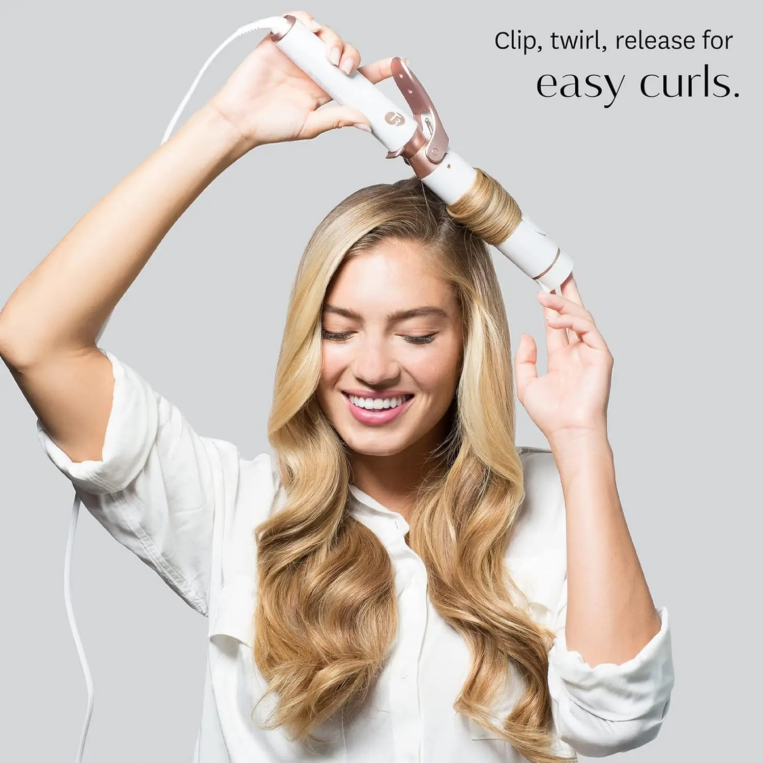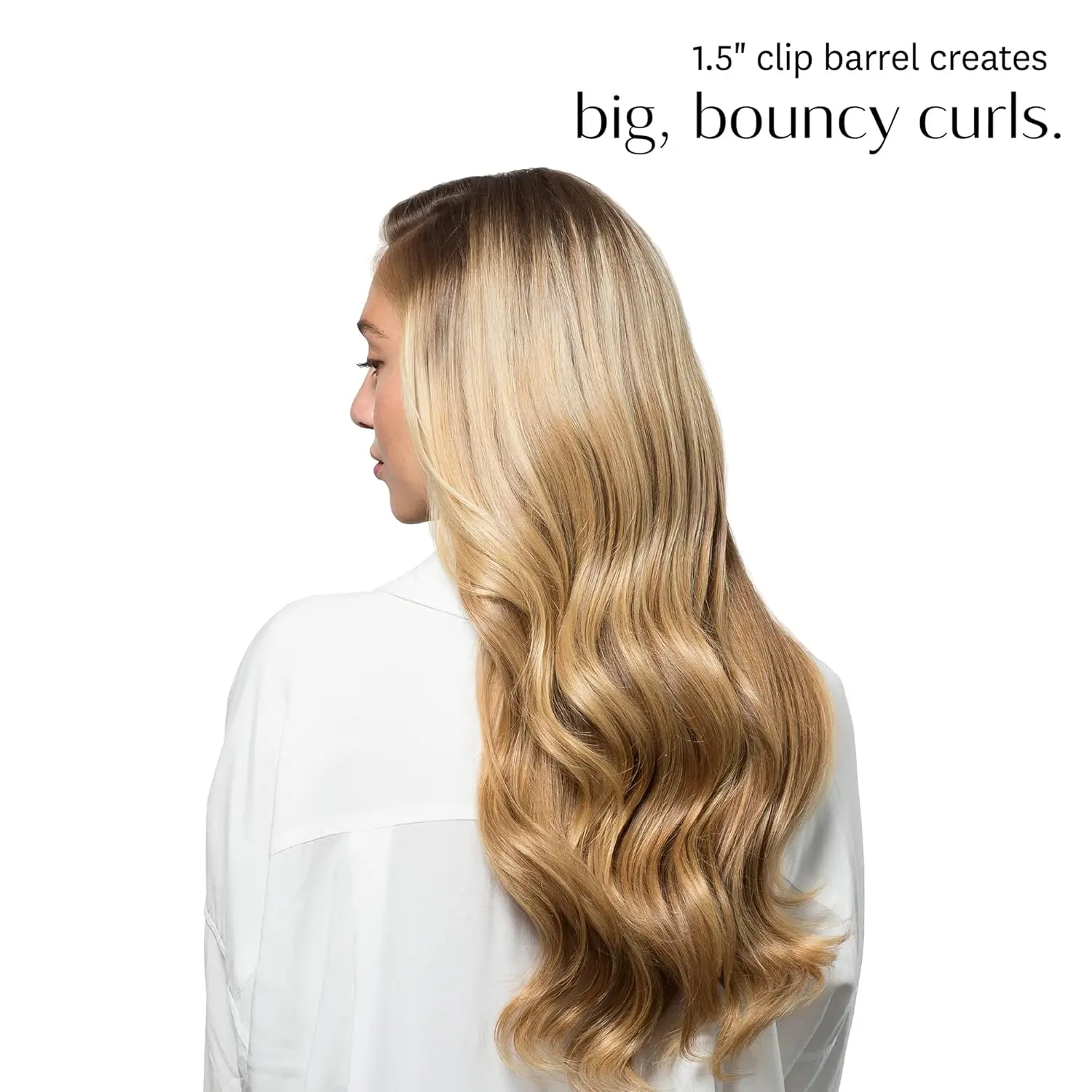 • 1.5″ Tourmaline + Ceramic clip barrel for voluminous curls