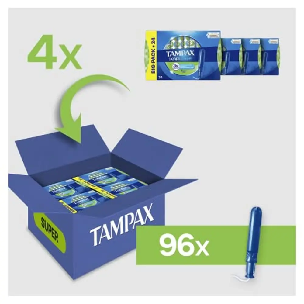 Experience superior comfort and protection with Tampax Compak Pearl Super Tampons. Designed for your active lifestyle, these tampons feature Tampax MotionFit Technology, adapting to your unique body shape for a secure fit and reliable leak prevention. The LeakGuard Braid provides an extra layer of defense, helping to stop leaks before they happen. The SmoothTouch Compact Applicator ensures comfortable and easy insertion, while the anti-slip grip offers confident control. The rounded tip further enhances comfort during application. Tampax Compak Pearl Tampons are also independently tested for harmful substances by Oeko-Tex, giving you peace of mind knowing you’re using a product that meets stringent safety standards. Live confidently and without worry, knowing Tampax Compak Pearl Super Tampons have you covered, providing the protection and comfort you need to stay active and worry-free throughout your period. Enjoy exceptional protection and discretion in a convenient, compact design. Ideal for on-the-go use, these tampons fit discreetly in your purse or bag. Choose Tampax Compak Pearl Super Tampons for worry-free protection and all-day comfort. Feel confident knowing that Tampax, a trusted brand for period protection, is working hard to keep you comfortable and protected. These super absorbency tampons are ideal for women with a heavy flow. The compact applicator makes them incredibly discreet and easy to carry, perfect for travel, work, or any occasion where you need reliable protection. With Tampax Compak Pearl, you can experience ultimate confidence and comfort during your period.