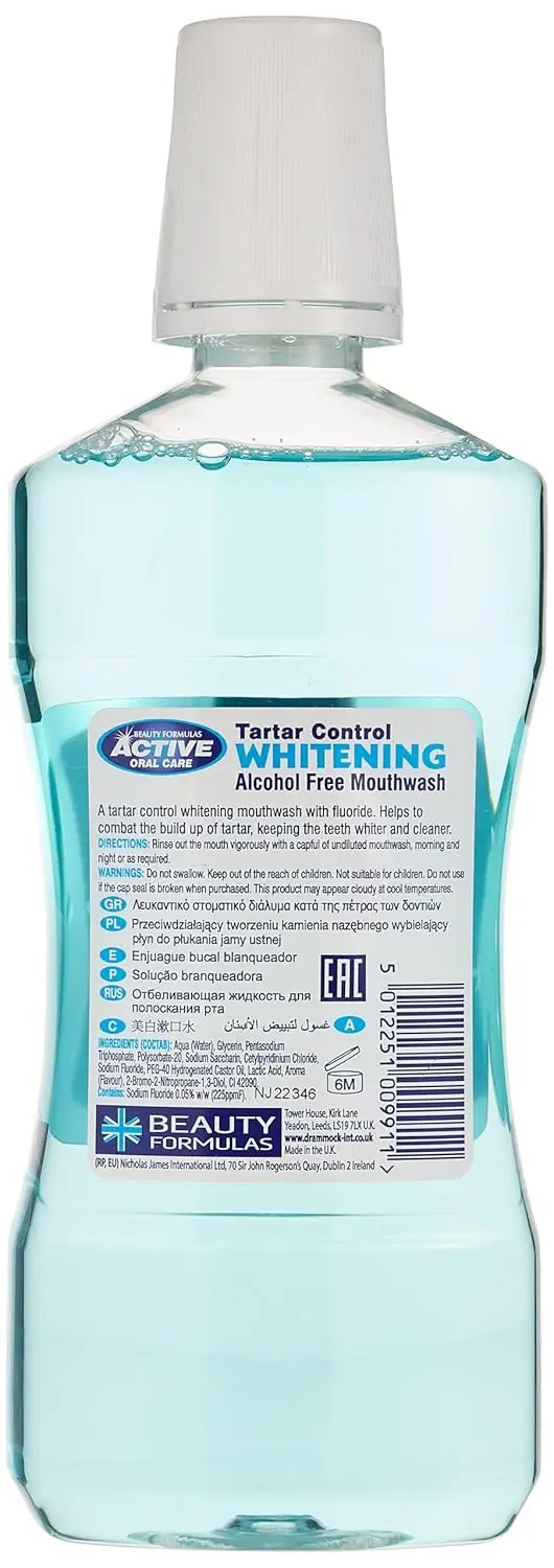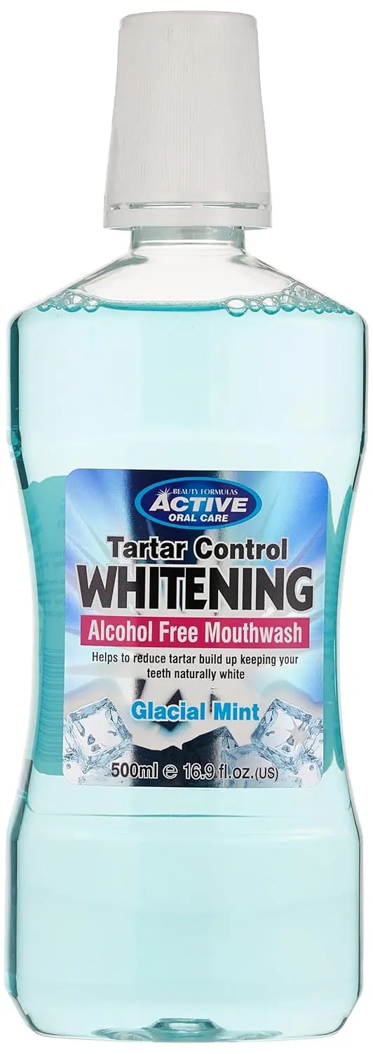 Experience the invigorating power of Tartar Control Whitening Mouthwash in Glacial Mint! This mouthwash provides a refreshing and effective solution for a cleaner, brighter, and healthier mouth. Our formula is designed to fight tartar buildup, gently whiten teeth, and leave your breath feeling icy-cool and fresh. Value for money is our priority. This mouthwash offers a good quality product that delivers noticeable results without breaking the bank. Its easy-to-use format seamlessly integrates into your daily oral hygiene routine, making it a simple yet powerful addition to your dental care regimen. This mouthwash not only cleans your teeth, but also protects your gums. Regular use helps prevent gingivitis and promotes overall oral health, giving you the confidence to smile brighter. The Glacial Mint flavor provides a long-lasting, clean taste that eliminates bad breath and leaves you feeling refreshed throughout the day. It’s the perfect way to start your morning and end your evening. Made with high-quality ingredients, this mouthwash is gentle on your enamel and safe for daily use. Enjoy a superior clean with the trusted protection and refreshing taste of Glacial Mint. Upgrade your oral care today and experience the difference!