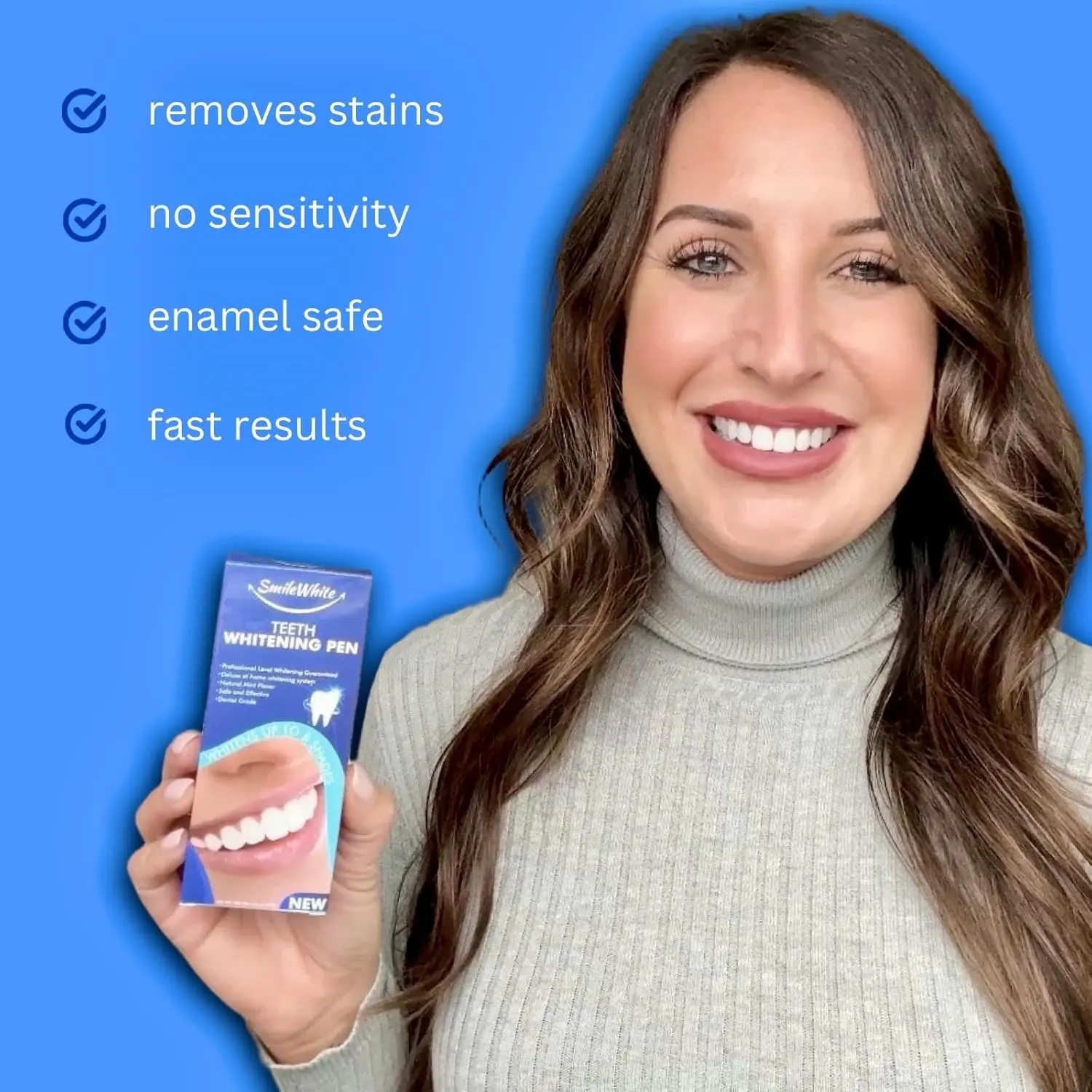 Achieve a brighter, whiter smile with the SmileWhite Teeth Whitening Pen 4-Pack! This comprehensive set offers a safe and effective way to remove years of stains from coffee, tea, wine, smoking, and soda, all from the comfort of your own home. Our innovative formula is gentle enough for daily use, yet powerful enough to deliver professional-grade whitening results without the sensitivity often associated with other whitening treatments. See visible results quickly, with the potential to whiten your teeth up to 8 shades when used as directed. Each pen is travel-sized and easy to use, making it perfect for maintaining your bright smile on the go. The SmileWhite 4-pen set provides 50+ uses and leaves your mouth with a refreshing mint flavor. Say goodbye to dull, stained teeth and hello to a confident, radiant smile with SmileWhite! This teeth whitening set is designed for daily use, ensuring consistent results and a dazzling smile. The easy-to-use pen design allows for precise application, targeting stains directly and maximizing the whitening effect. Experience a professional-quality whitening treatment without the expensive dentist visits. With SmileWhite, you can achieve a significantly brighter smile, boosting your confidence and leaving a lasting impression. Get ready to “Smile White” and enjoy the benefits of a whiter, healthier-looking smile! Our pens are formulated to be effective on a wide range of stains, ensuring comprehensive whitening for everyone. Unlock your best smile with SmileWhite!