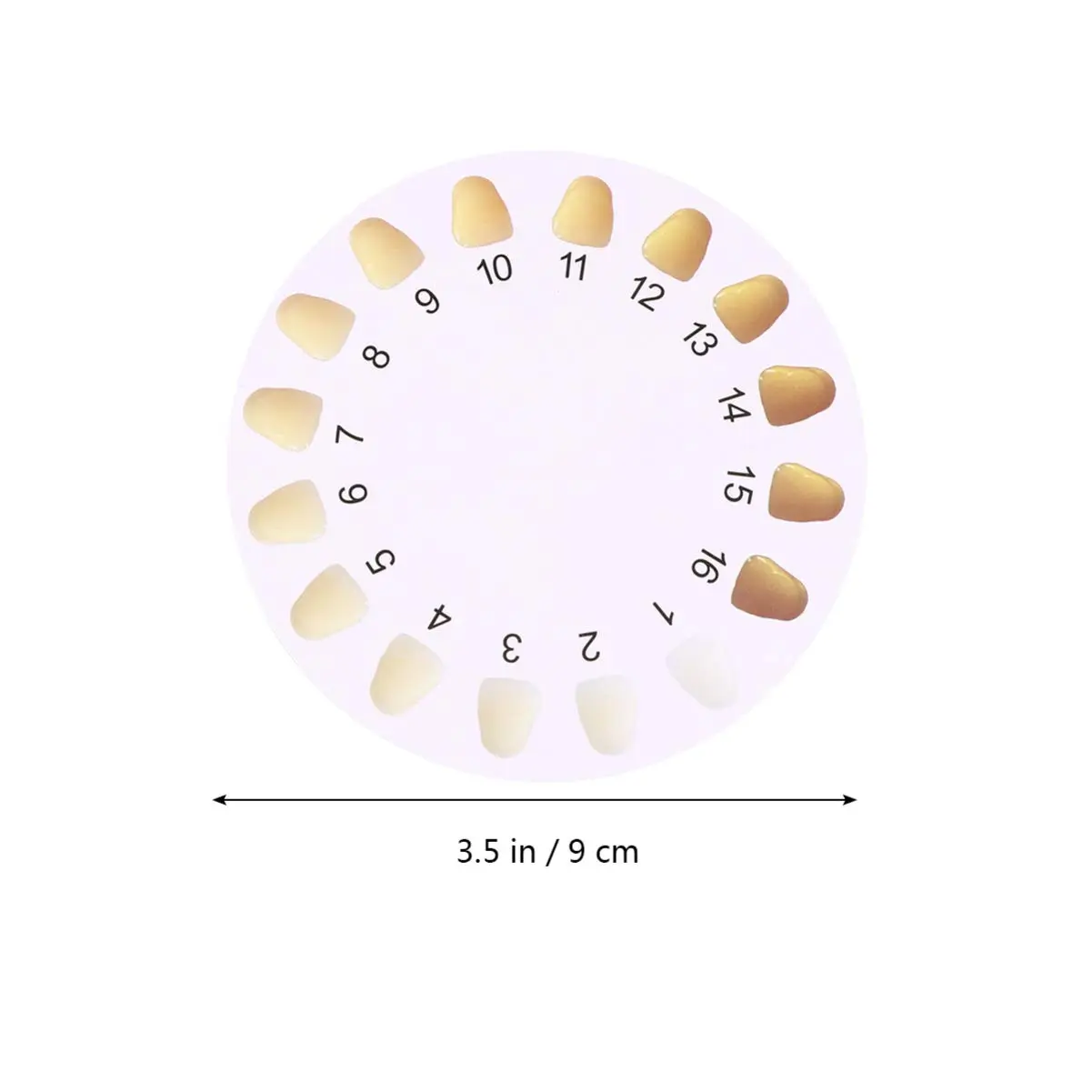 Achieve a brighter, whiter smile with our Teeth Whitening Shade Guide! This meticulously crafted 20-color chart is designed to help you easily track and monitor your teeth whitening progress from the comfort of your own home. Arranged in precise shade value order, this guide provides a clear and intuitive visual reference, making it simple to discern even subtle differences in your teeth’s shade before, during, and after bleaching treatments. No more guesswork! See the real, measurable results of your whitening efforts.