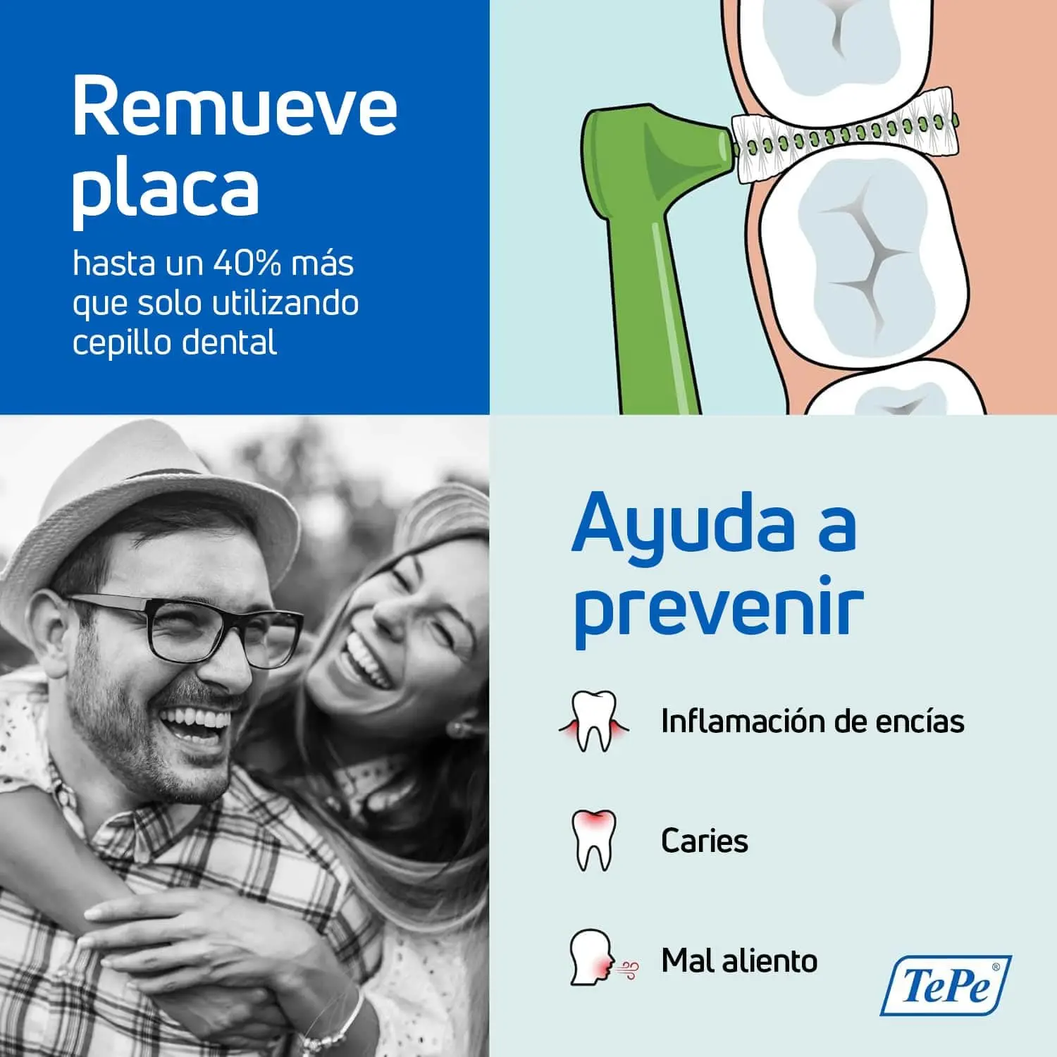 • Effectively cleans between teeth, removing food particles and plaque.