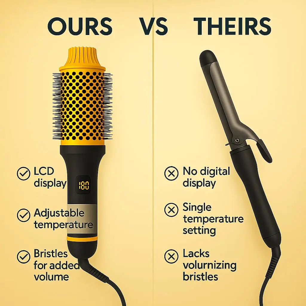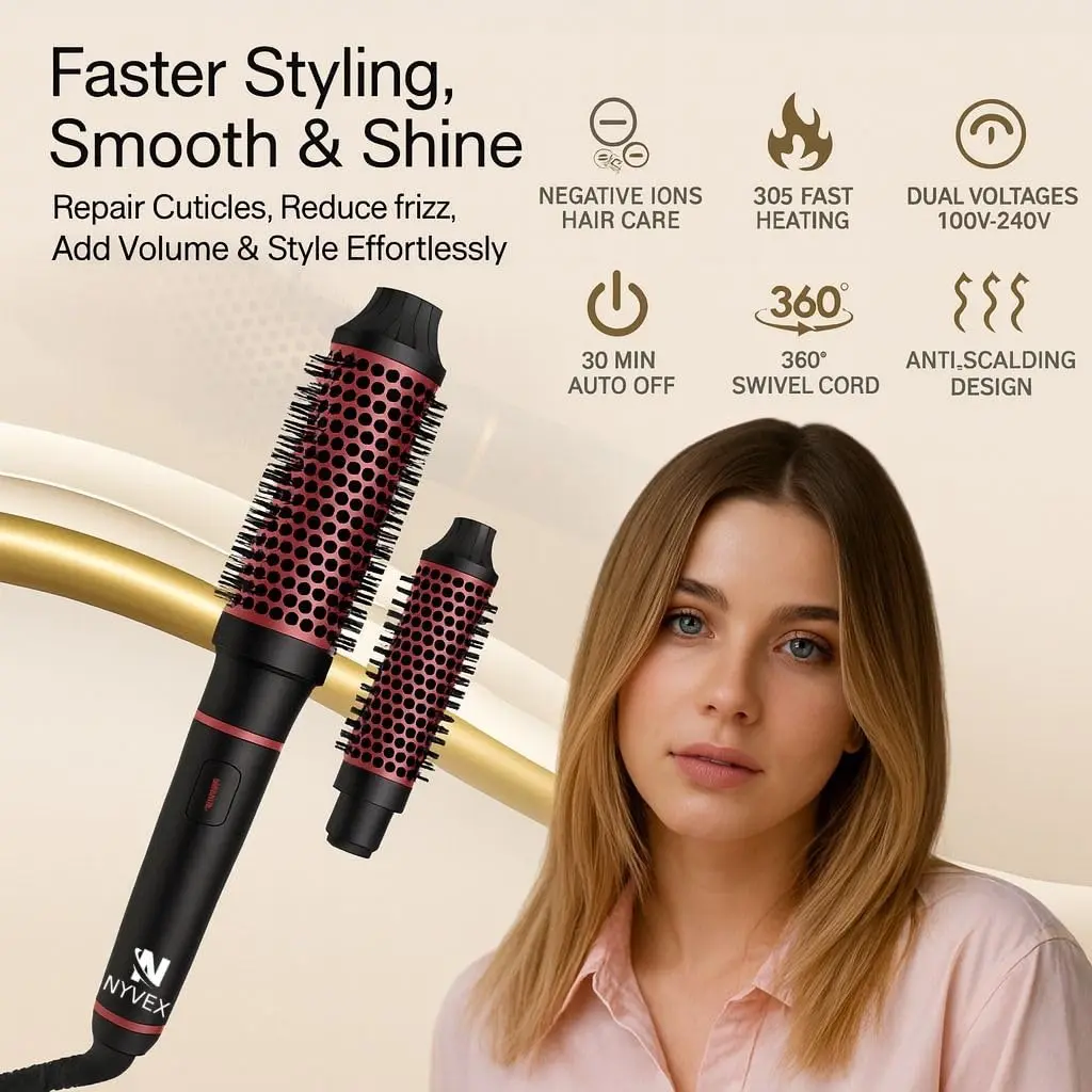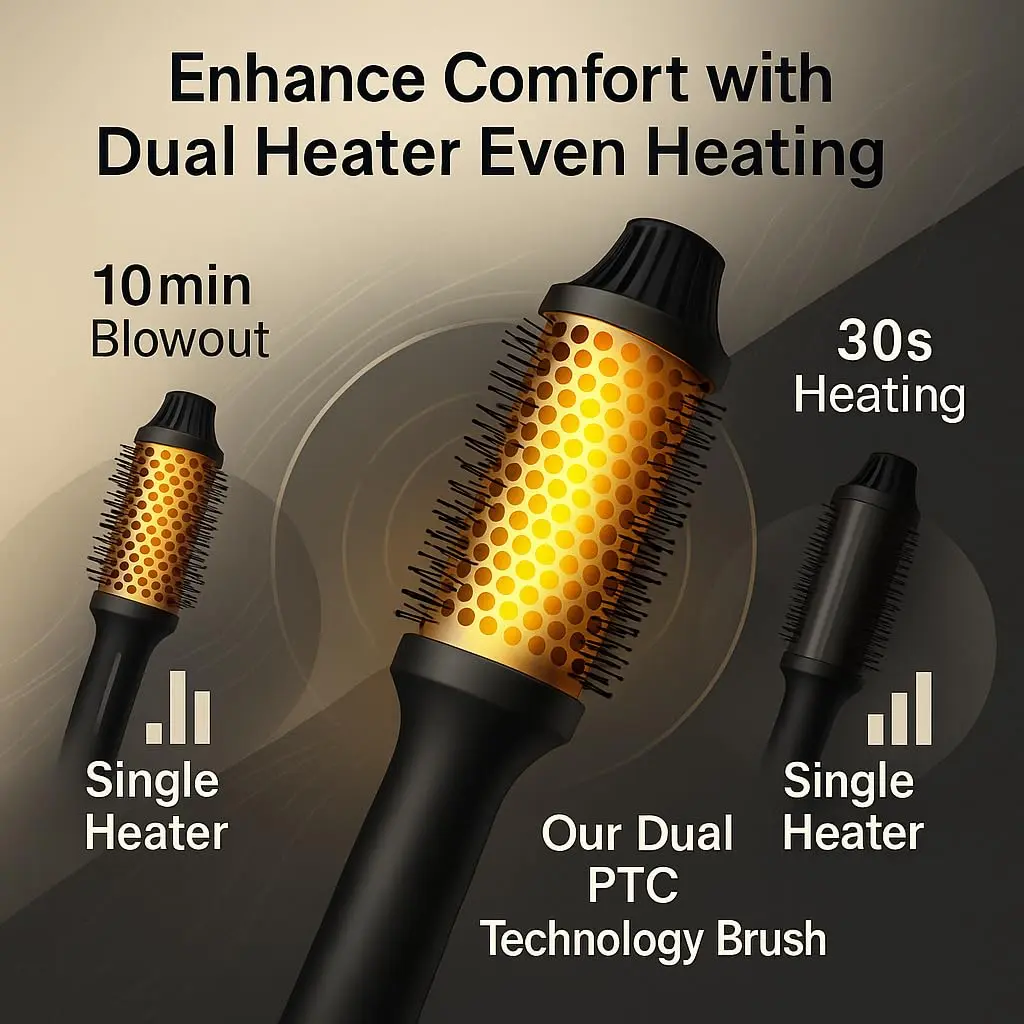 Thermal Brush with 2 Heads | Fast Heat & Volume | Precise LCD