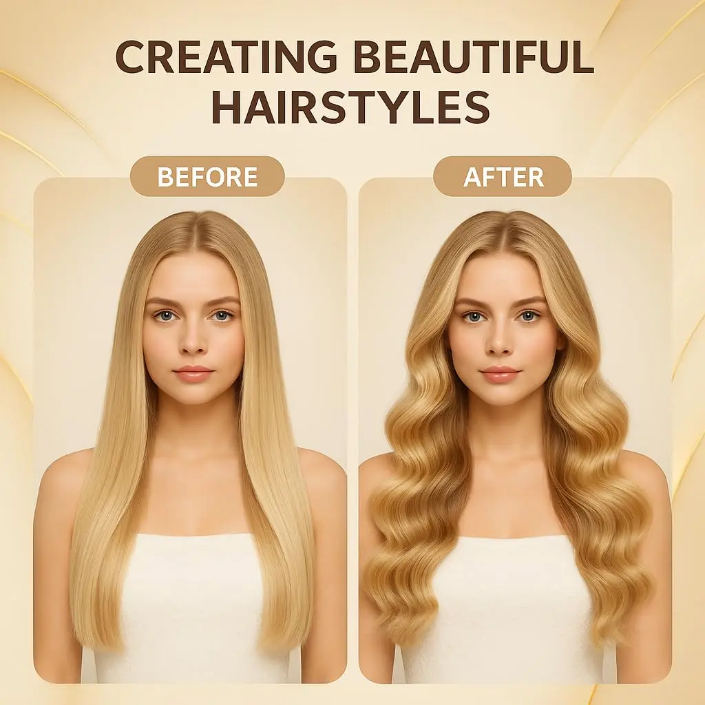 Unleash salon-quality styling at home with our revolutionary thermal brush, a complete hair transformation tool. This all-in-one device combines the power of a hair dryer and curler, drastically reducing your styling time while delivering stunning results. The package includes the main thermal handle, two interchangeable curling heads (32mm and 38mm), a heat-resistant glove for safe handling, and a sectioning clip for precise styling. We’ve also included an easy-to-follow instruction manual to get you started right away. Adapt your look for any occasion with the interchangeable curling heads. The 32mm barrel creates defined, bouncy curls, while the 38mm barrel produces soft, natural waves. These aluminum heads are incredibly easy to swap, allowing you to customize your style without the need for multiple styling tools. Achieving the perfect style for your hair type is effortless with our tailored heat settings. For delicate, damaged, or thin hair, use the gentle settings (140℃ – 148℃). For normal to thick hair, utilize the effective heat settings (165℃ – 180℃). Experience instant volume and shine with our innovative Dual PTC technology, which heats up in just 30 seconds. This thermal brush lifts flat roots, smooths frizz, and imparts a healthy shine in a single pass, streamlining your morning routine. This versatile 2-in-1 dryer and curler allows you to dry and style your hair simultaneously. Functioning as both a hair brush dryer to remove moisture and an automatic hair curler to define shape, it takes you from damp hair to a volumized, flawless blowout in half the time. The tangle-free 360° swivel cord ensures comfortable and unrestricted styling. The professional 2.4-meter power cord gives you total freedom to move, while the rotating base prevents annoying tangles. Easily reach the back of your head for a consistently flawless finish from every angle. Take complete control of your styling with the clear LCD display and 5 precise heat settings ranging from 120°C to 210°C. Whether you have fine, colored, or thick hair, you can select the exact temperature needed to style safely and prevent heat damage. Our thermal brush is designed for global use with universal dual voltage support (100–240V), ensuring safe and reliable performance anywhere in the world. Lightweight and compact, it packs easily for vacations and makes a thoughtful gift for anyone who loves styling their hair on the go.