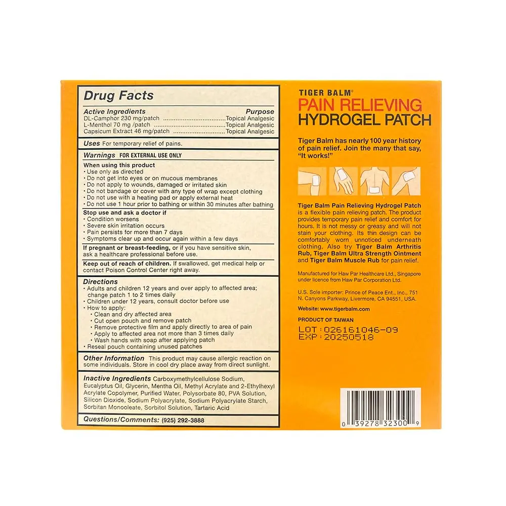 Experience targeted pain relief with the Tiger Balm Pain Relieving Patch Large. This medicated patch delivers warm, soothing relief for aches, pains, and sore muscles. Perfect for back pain, shoulder pain, neck pain, knee pain, and more, these patches are easy to apply and provide long-lasting comfort. The large size offers broader coverage, ensuring you can target larger areas effectively. Tiger Balm’s trusted formula, known for its herbal ingredients, works to alleviate discomfort and promote healing. Whether you’re dealing with chronic pain or occasional muscle soreness, these patches provide a convenient and effective solution. The discreet design allows you to wear them comfortably under clothing, so you can get relief on the go. Trust Tiger Balm, a name synonymous with pain relief for generations, to help you get back to feeling your best. The patches adhere securely to the skin, providing consistent relief throughout the day or night. The convenient packaging makes them easy to store and transport, so you can always have them on hand when you need them most. These patches are a great alternative to creams and ointments, offering a mess-free application and targeted relief. The carefully selected ingredients work synergistically to provide a warming sensation that helps to relax muscles and ease pain. The Tiger Balm Pain Relieving Patch Large is a must-have for anyone seeking fast, effective, and long-lasting pain relief.