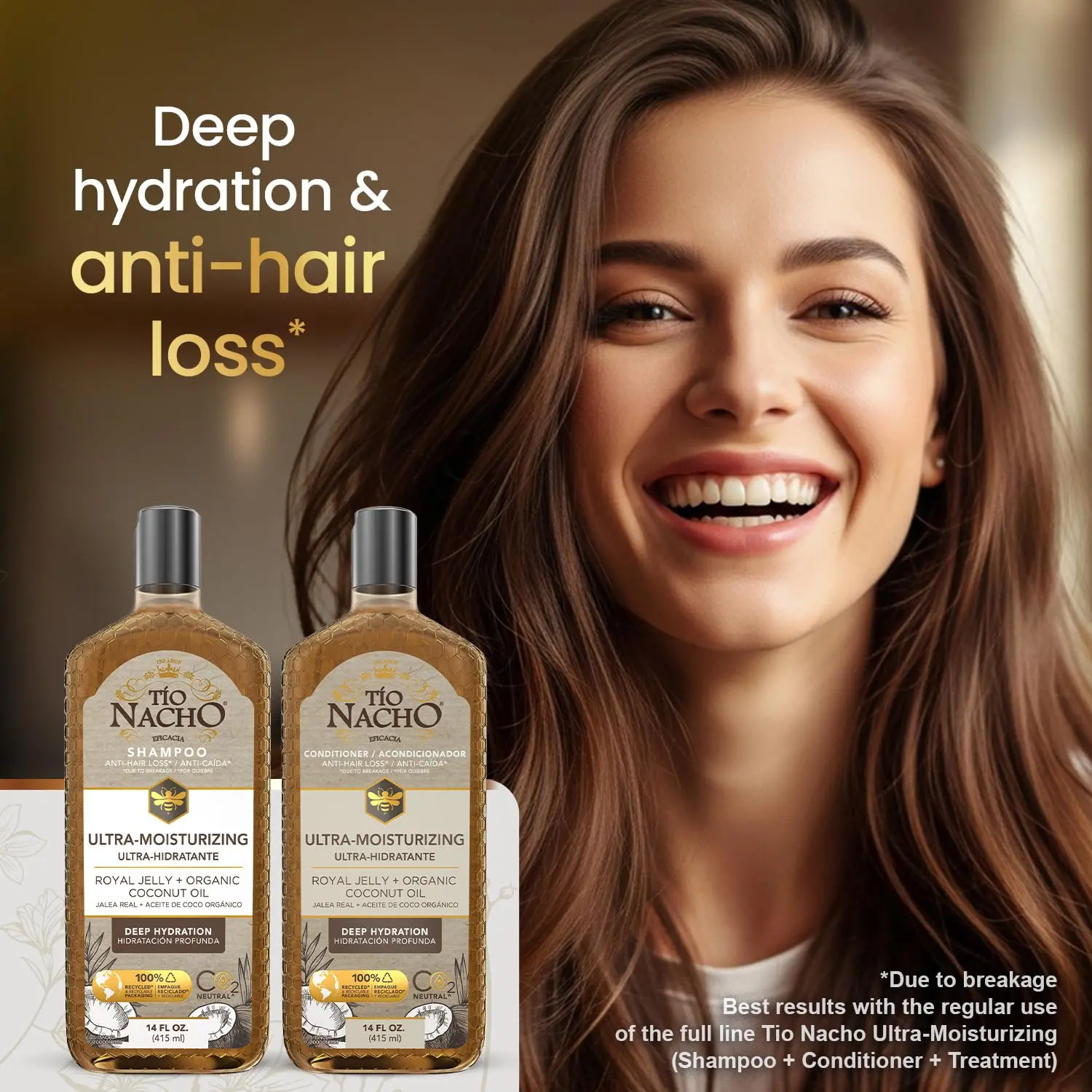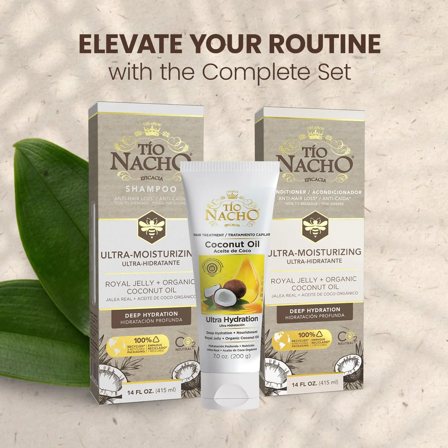 Transform your hair with the Tio Nacho Coconut Oil Shampoo and Conditioner Set! Experience the revitalizing power of nature’s best ingredients, carefully blended to nourish, hydrate, and strengthen your hair from root to tip. Our unique formula combines the benefits of coconut oil and royal jelly for a healthier, more vibrant mane. Say goodbye to dry, brittle hair and hello to luxuriously smooth, radiant locks. This set provides the ultimate solution for repairing damage, reducing breakage, and enhancing overall hair health. Coconut oil, known for its smoothing and nourishing properties, penetrates deep into the hair shaft, sealing in moisture and taming frizz. Royal jelly stimulates circulation, providing essential nutrients to every strand, revitalizing and invigorating your hair. For a complete hair care ritual that delivers exceptional results, choose our complete system. It promises not just intense hydration but also protection and a brighter, more radiant appearance. Make each wash a step towards healthier, more beautiful hair with Tio Nacho. Experience the transformative power of moisture-rich hair care with this shampoo and conditioner set. It restores hydration, fortifies each strand, and reduces the risk of breakage and split ends, leaving you with strong, resilient hair.